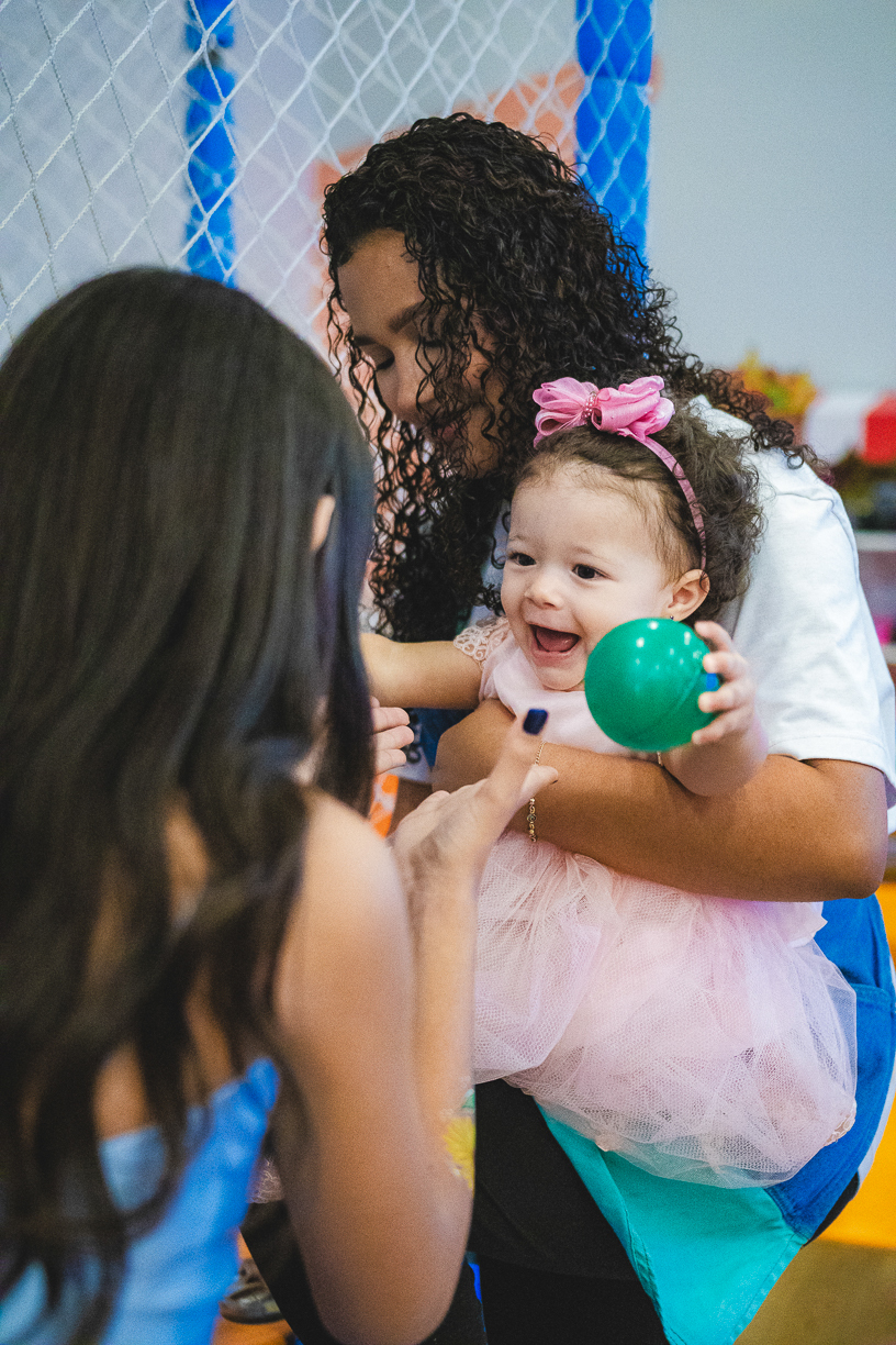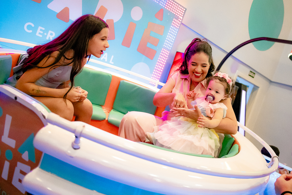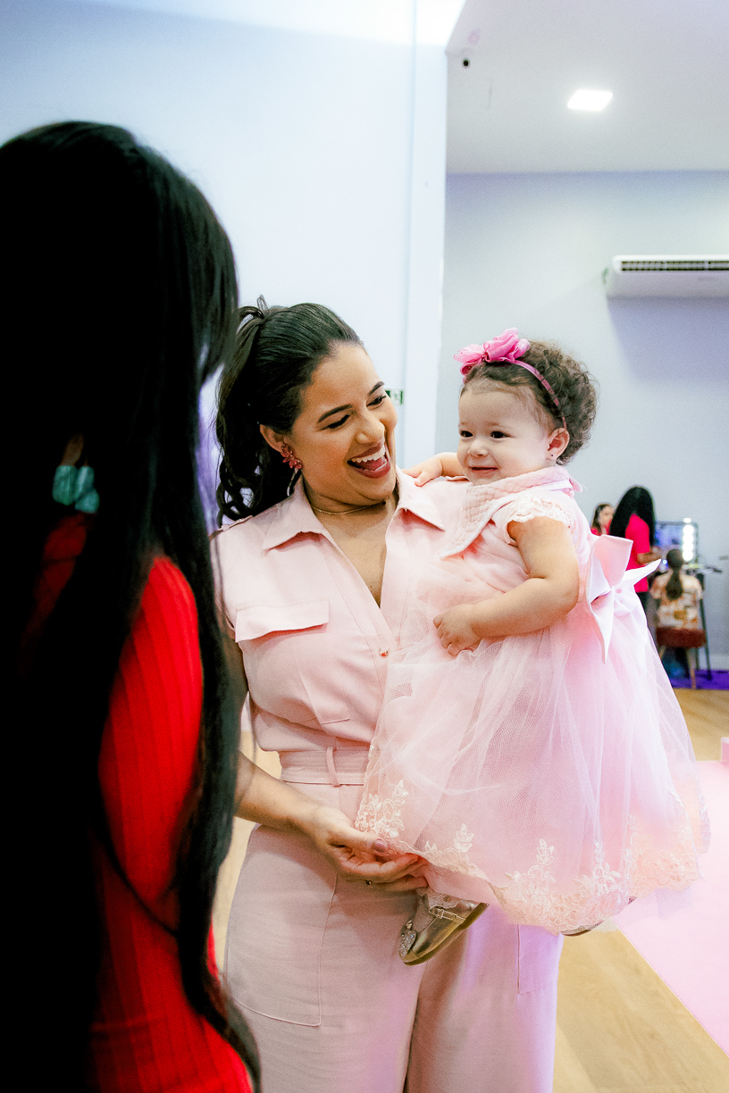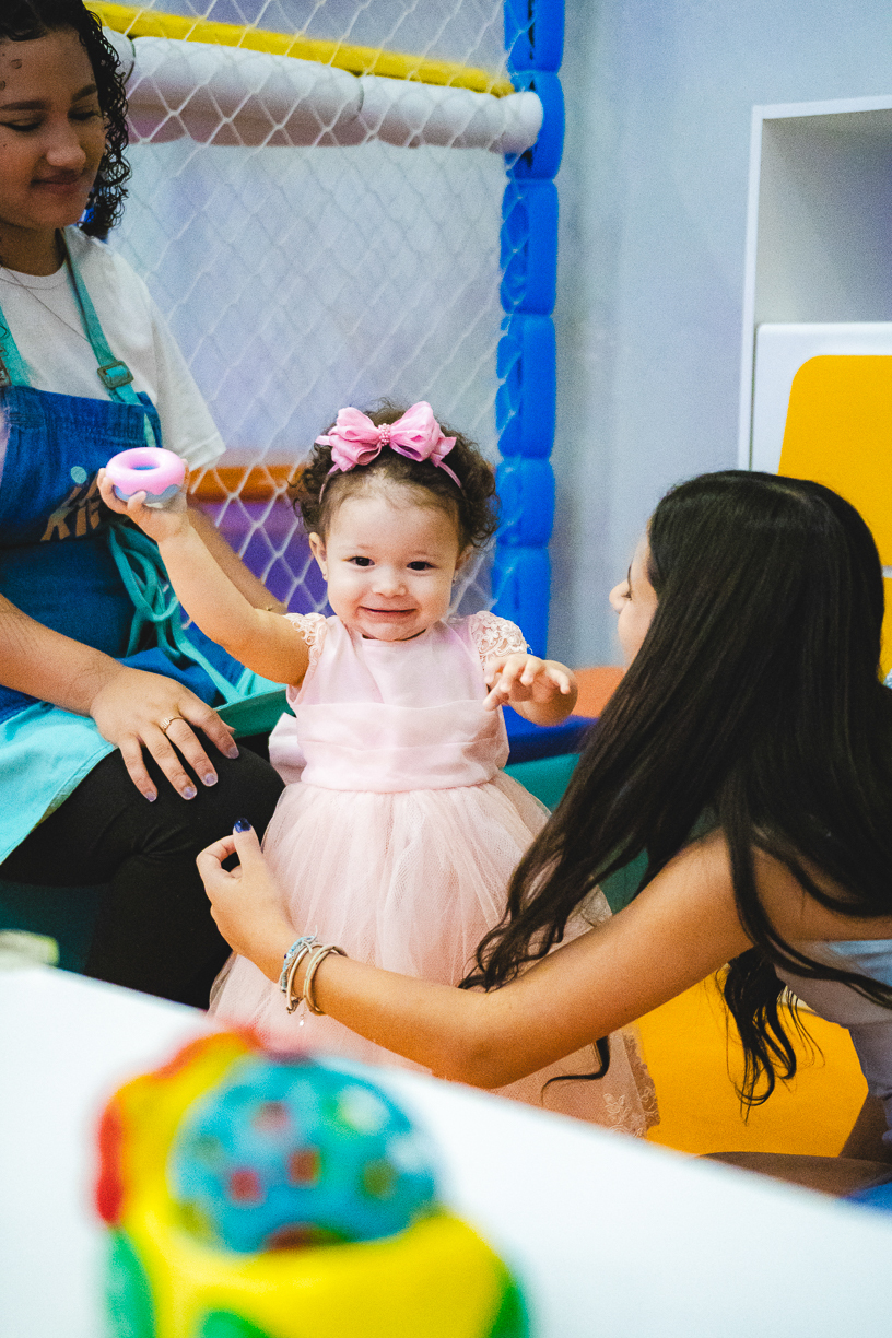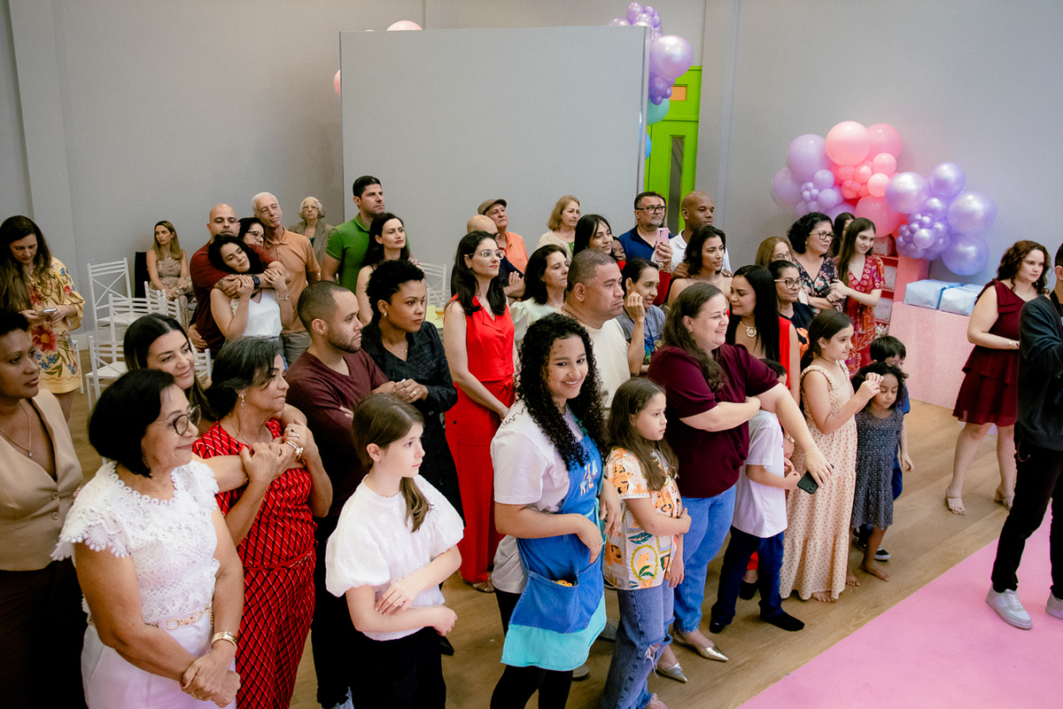 O tema de borboletas encheu o espaço com tons suaves de roxo, rosa e amarelo, criando uma atmosfera delicada e acolhedora. Desde o início, ela se mostrou encantada com cada detalhe, distribuindo sorrisos pra todo mundo e encantando quem se aproximava.