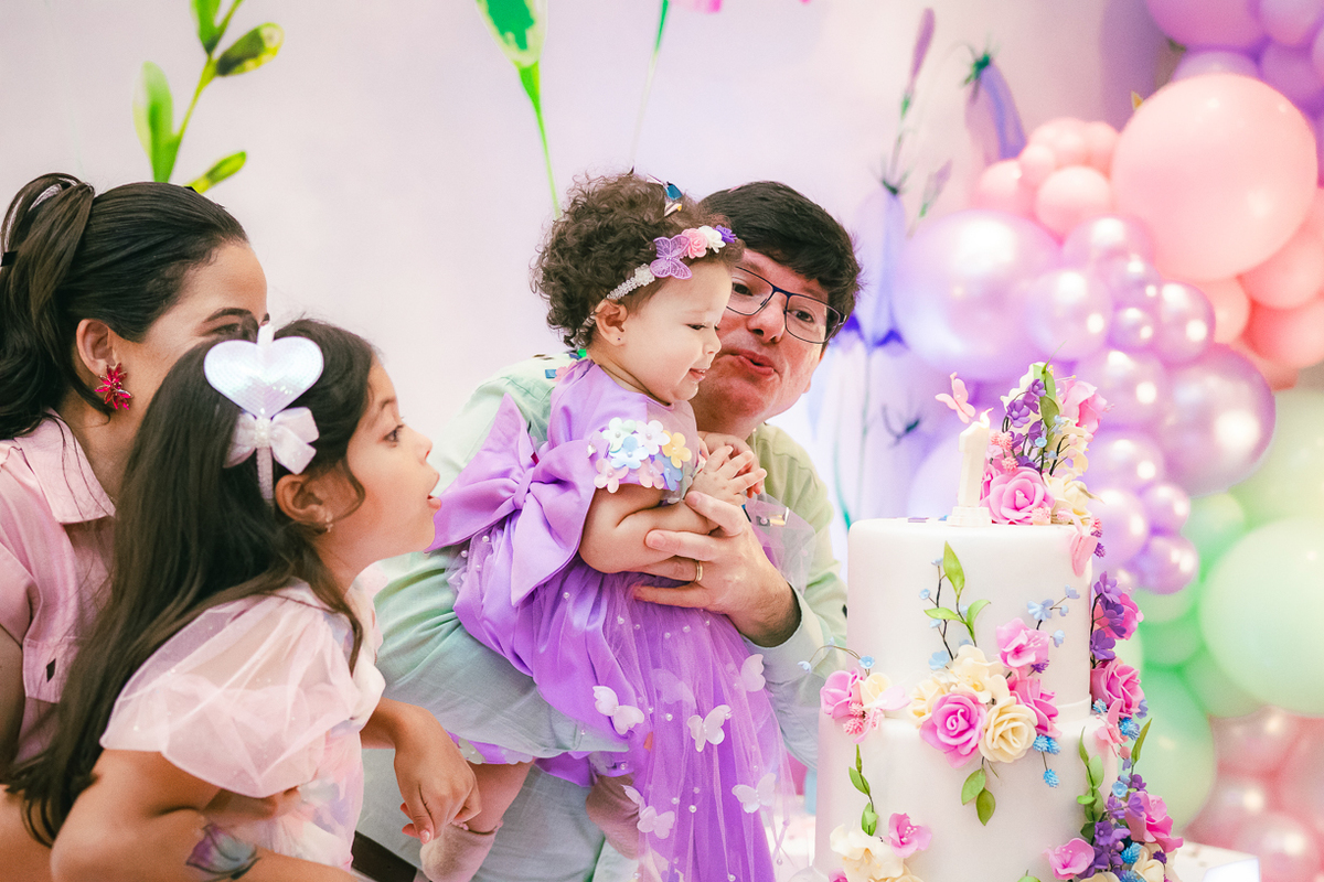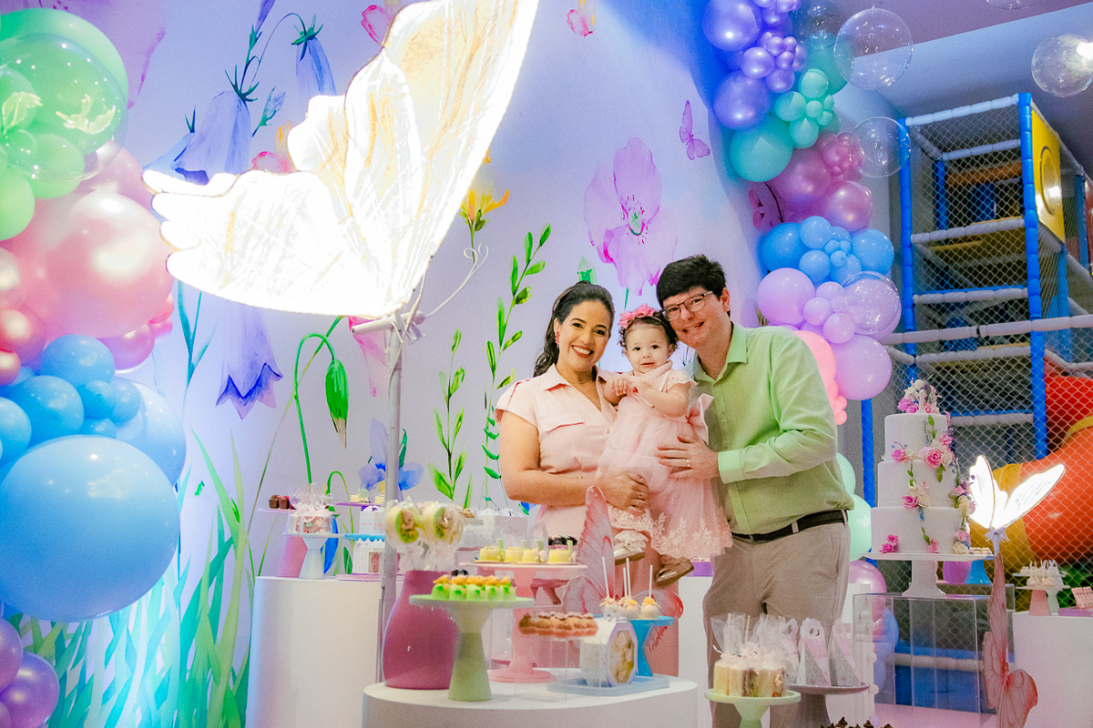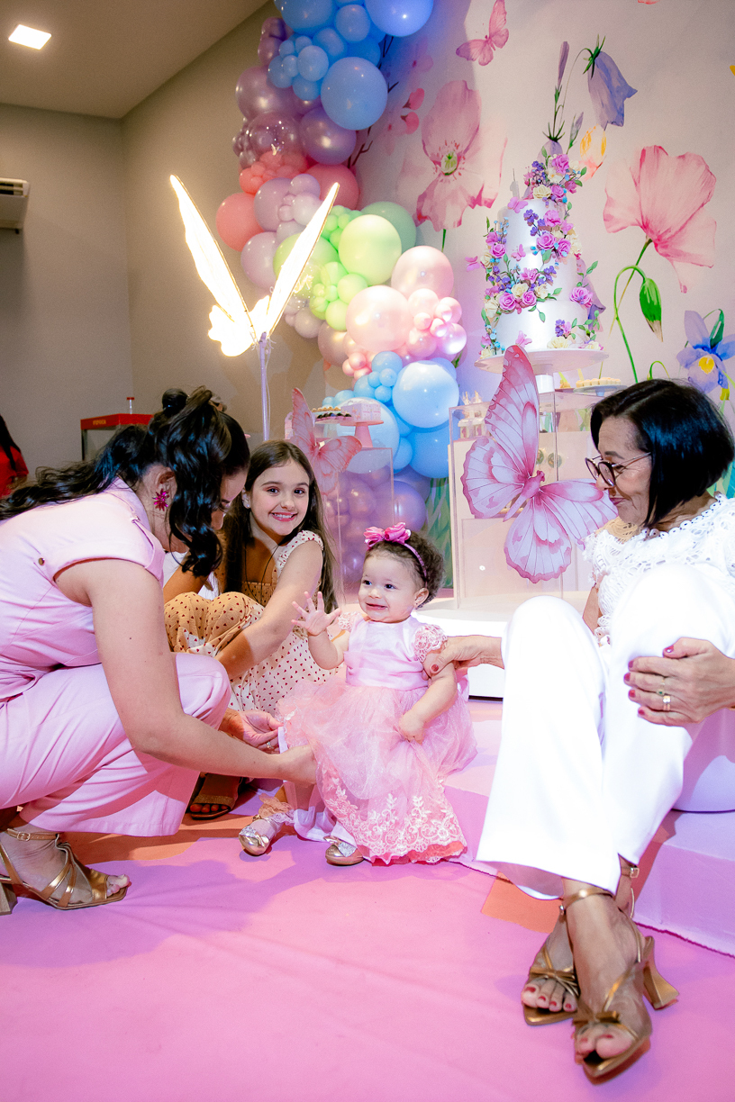 Giovanna parecia uma princesa entre as borboletas, irradiando vida em cada gesto. E em cada foto, o brilho dela se mistura à suavidade das cores, criando um retrato único de um dia que nasceu para ser lembrado com carinho.