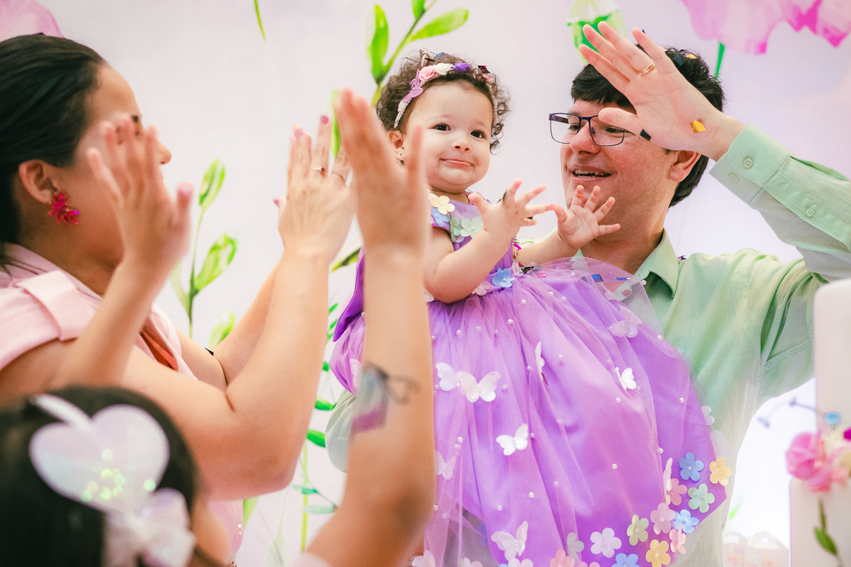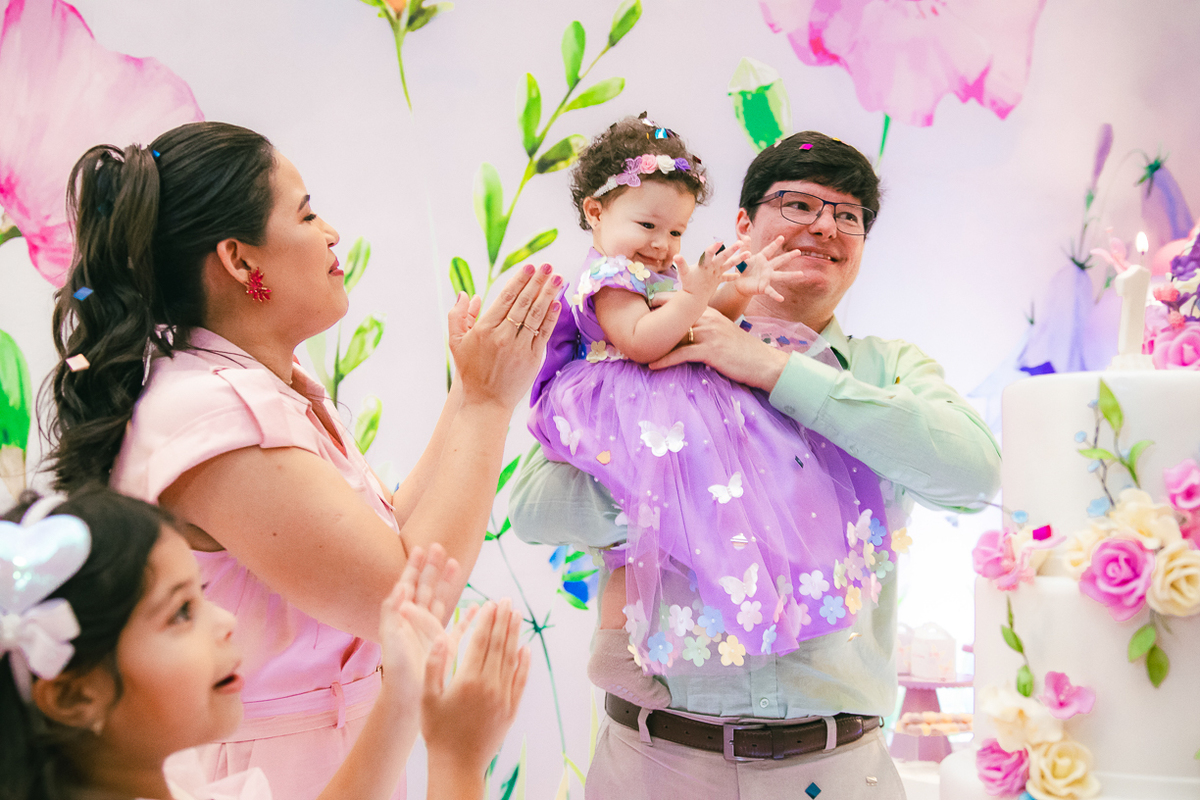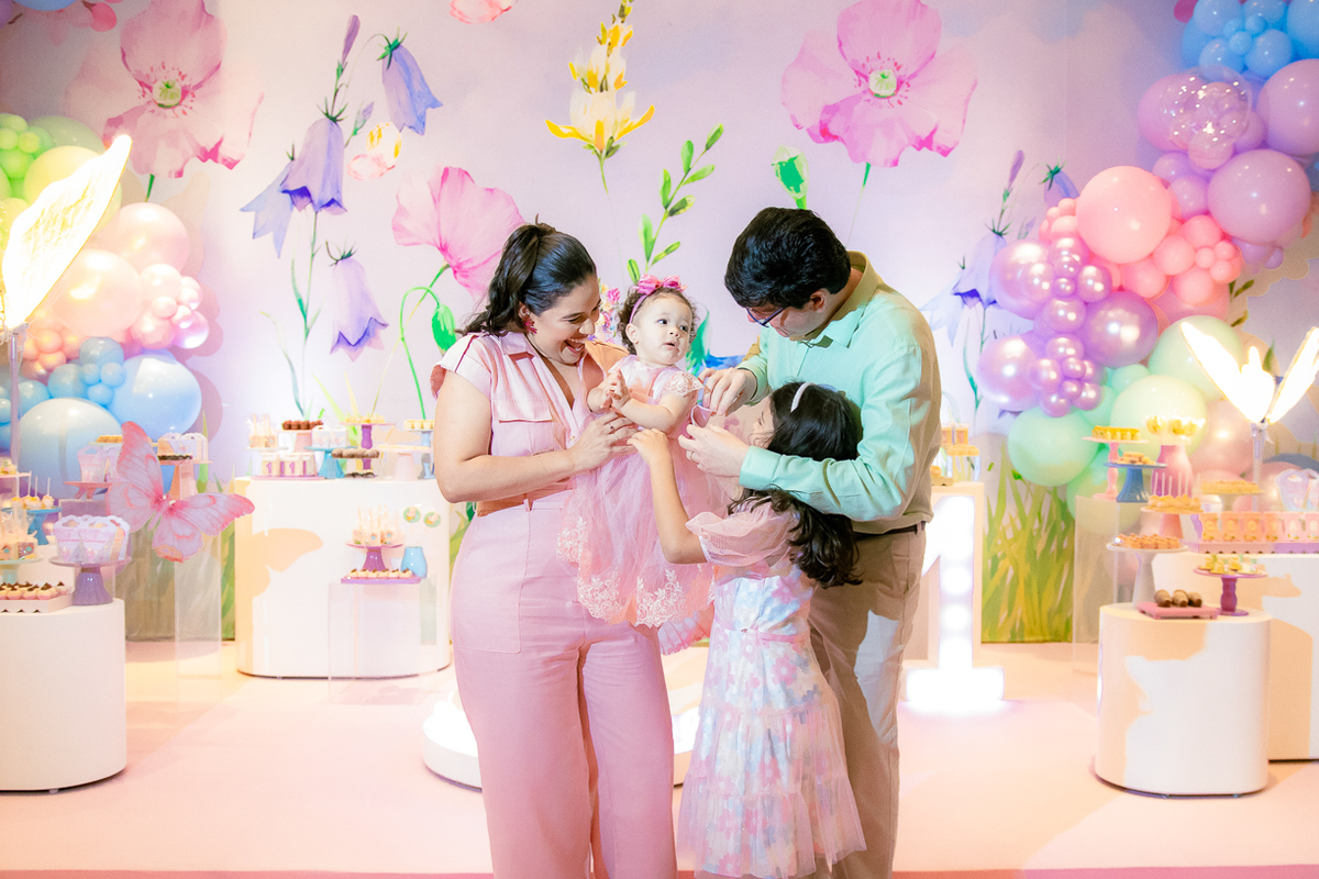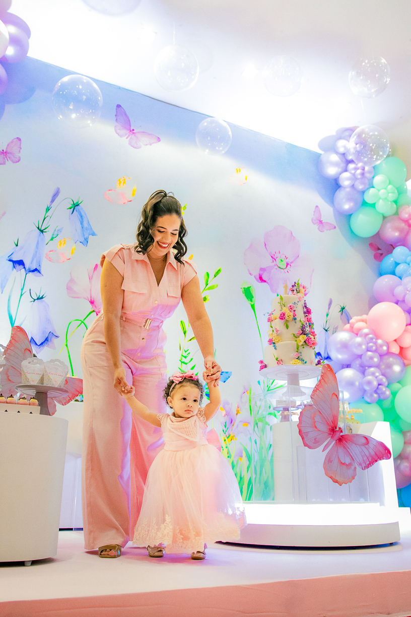 Giovanna parecia uma princesa entre as borboletas, irradiando vida em cada gesto. E em cada foto, o brilho dela se mistura à suavidade das cores, criando um retrato único de um dia que nasceu para ser lembrado com carinho.