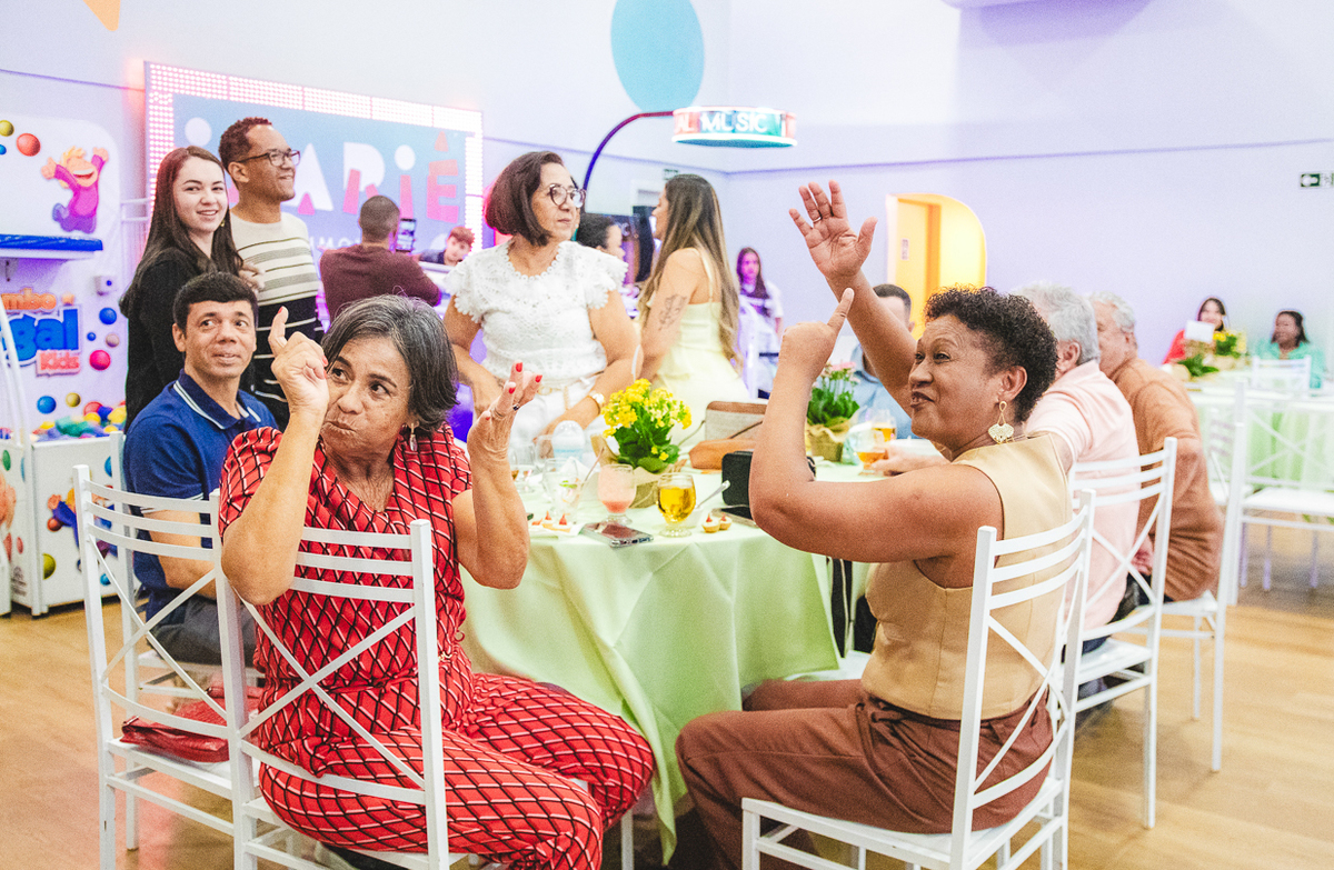 As crianças brincavam entre as decorações coloridas enquanto os adultos se envolviam na festa com a mesma alegria. O clima era de união, amor e pureza. Uma festa simples e genuína, como a própria infância.