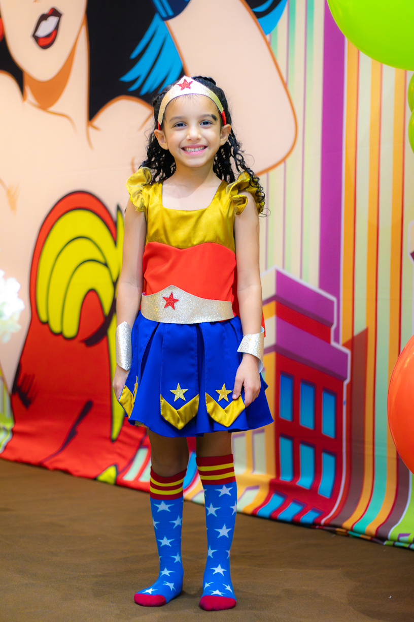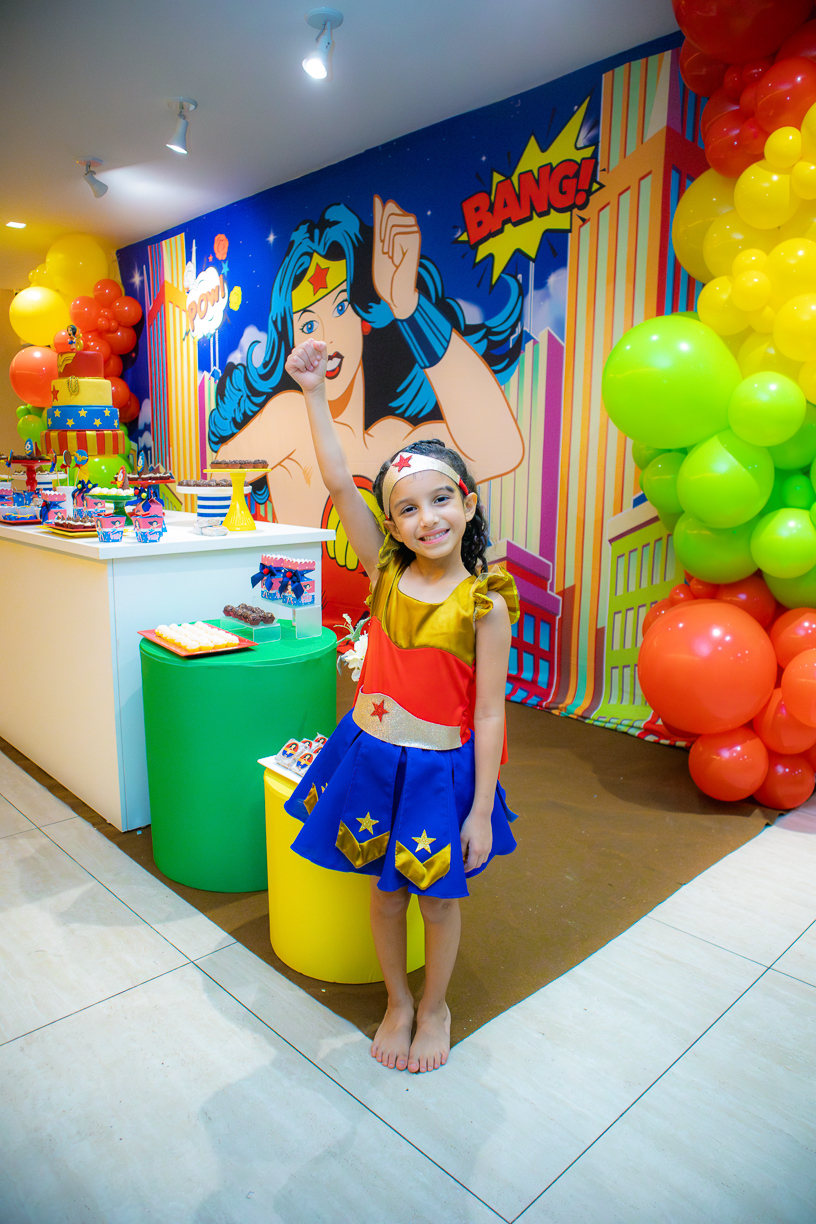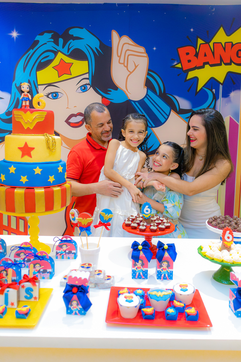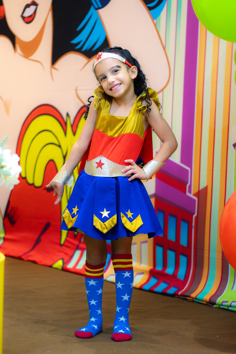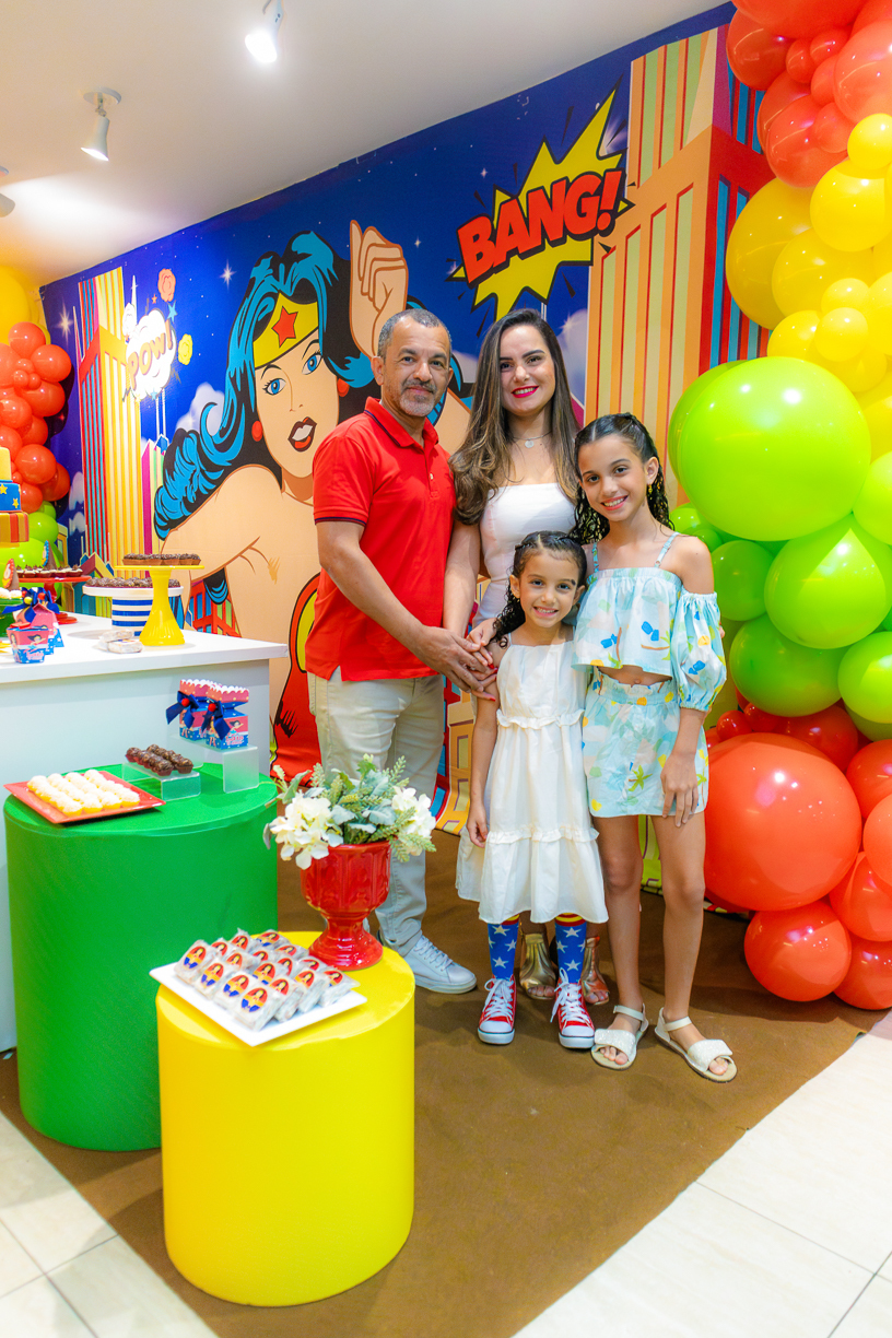 A festa tinha o brilho dos quadrinhos, mas o coração era de menina: espontânea, leve, cheia de curiosidade. A cada abraço, a cada brincadeira, o tempo parecia desacelerar. E nas fotos, o instante se fez eterno, o momento exato em que uma criança descobre que crescer pode ser bonito, mas ser criança é o maior dos poderes.