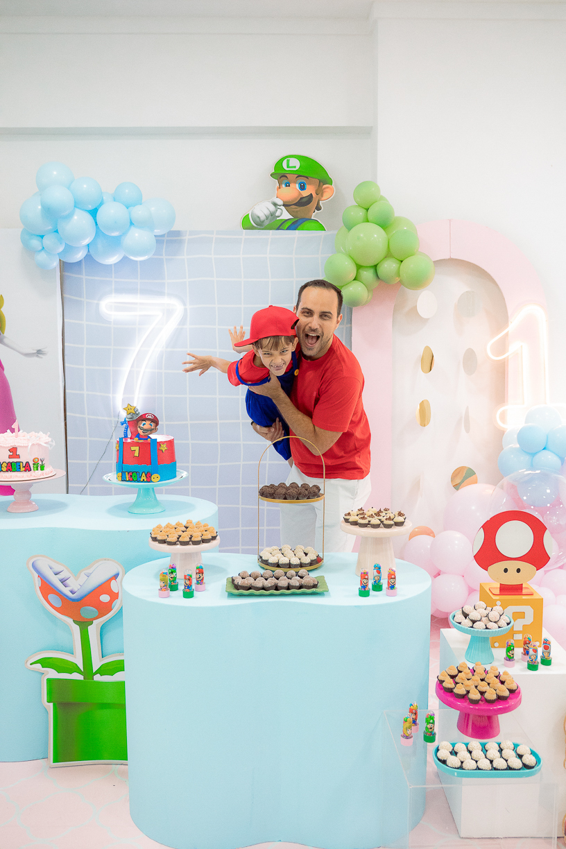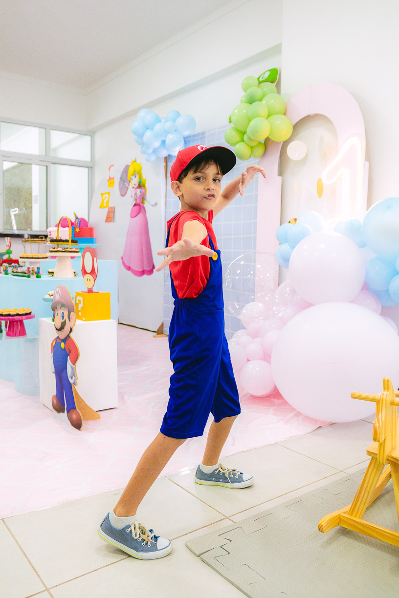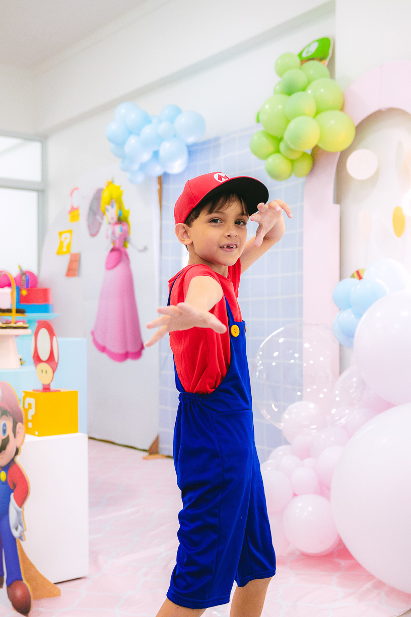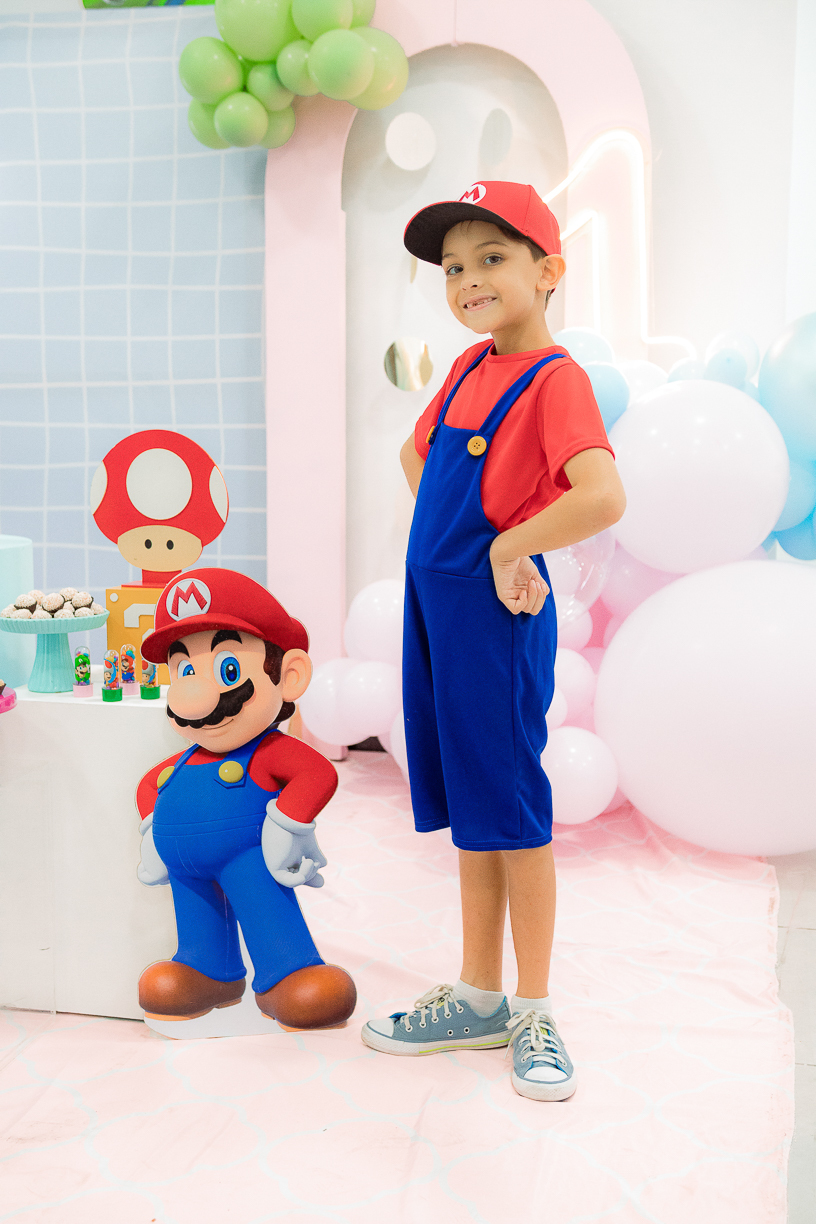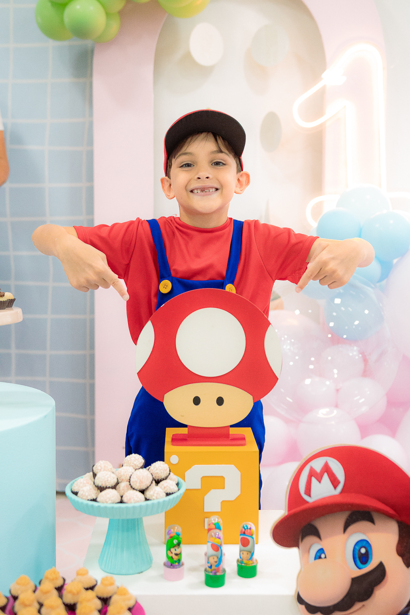 Sabe aqueles que só existem na imaginação das crianças? O tema Super Mario ganhou vida com cores vibrantes, risadas e pequenos detalhes que transformaram o espaço em um reino digno dos jogos.