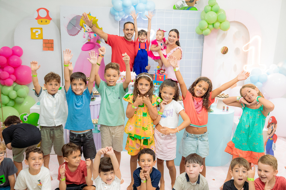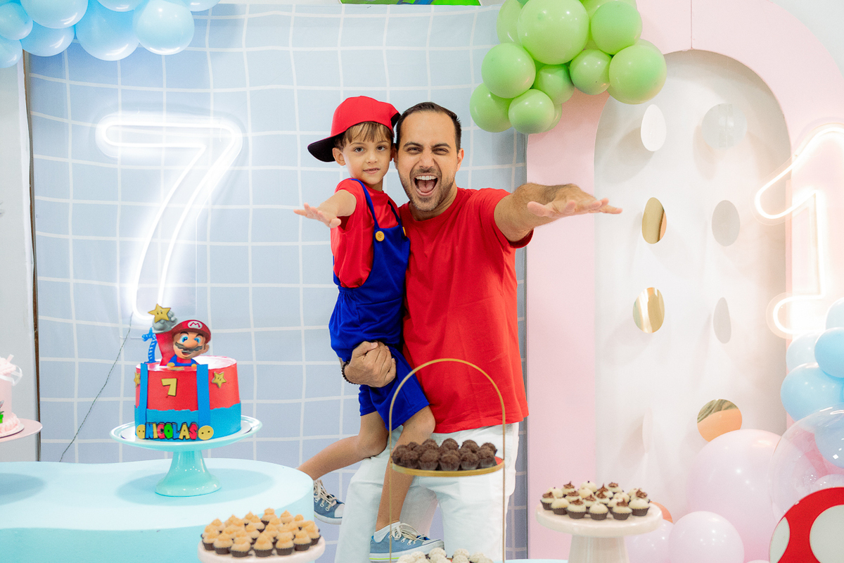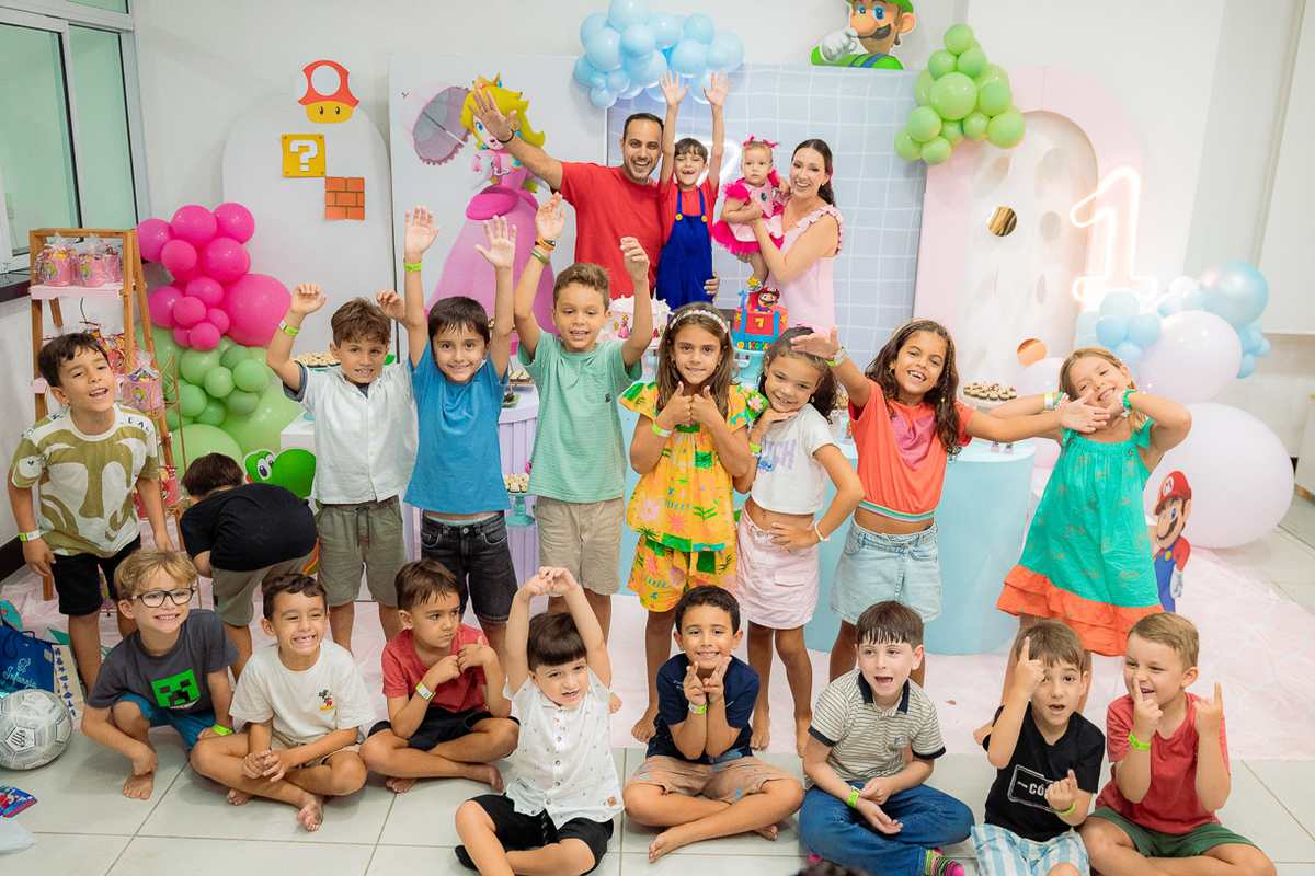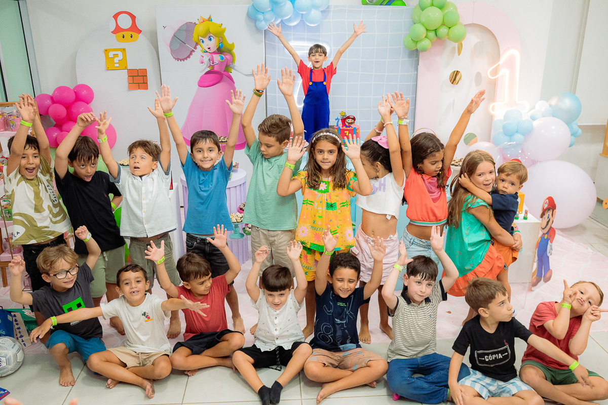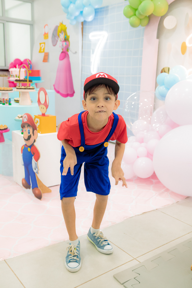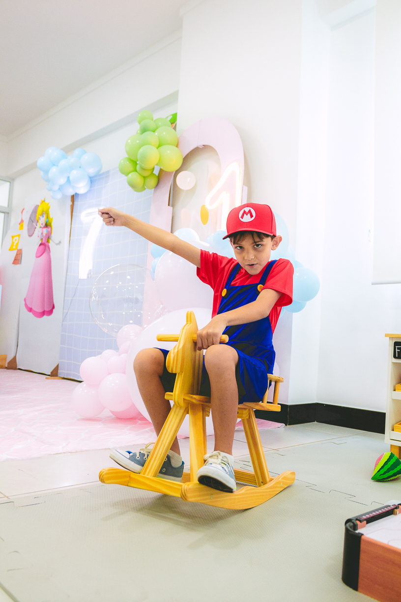 Sabe aqueles que só existem na imaginação das crianças? O tema Super Mario ganhou vida com cores vibrantes, risadas e pequenos detalhes que transformaram o espaço em um reino digno dos jogos.