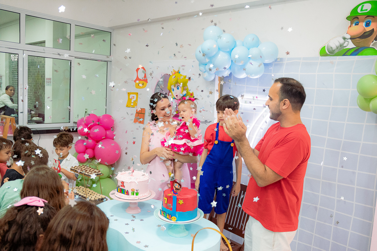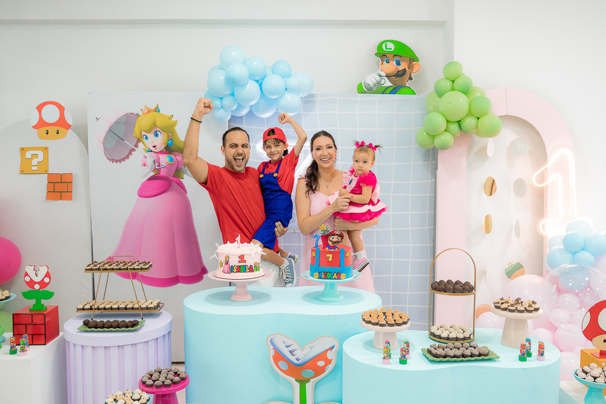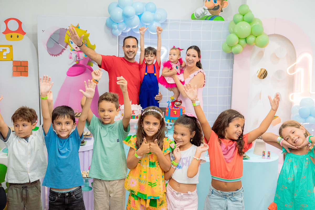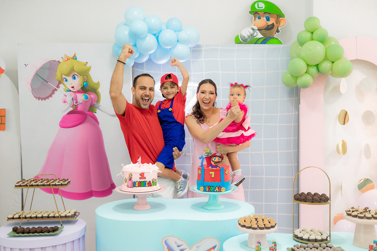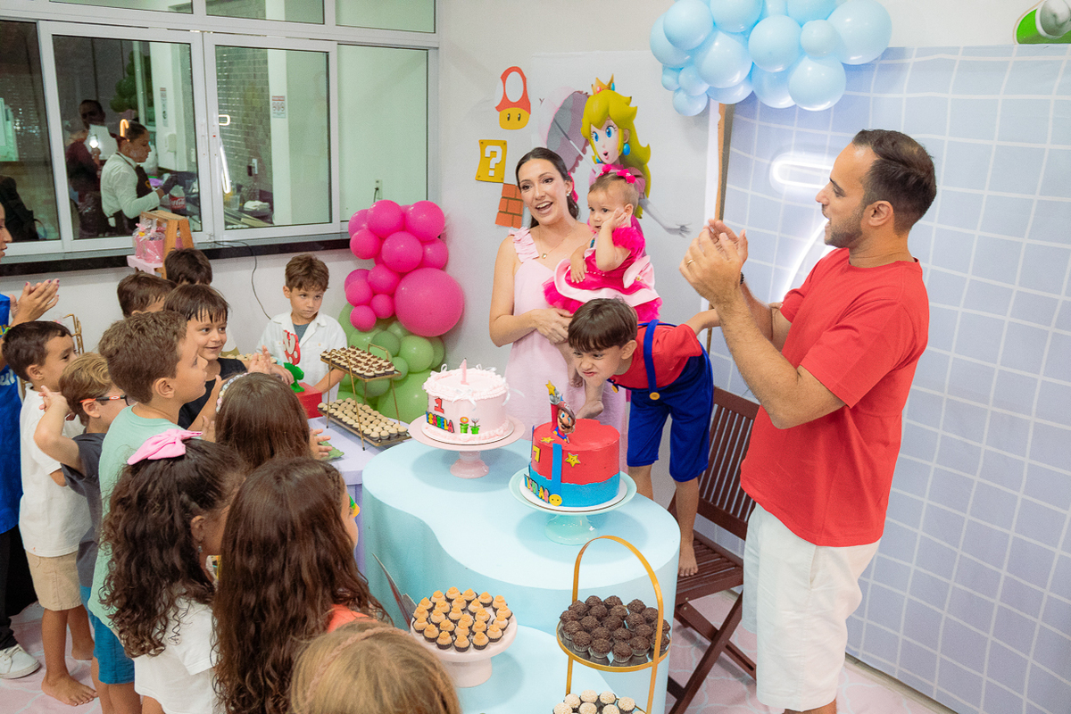 Sabe aqueles que só existem na imaginação das crianças? O tema Super Mario ganhou vida com cores vibrantes, risadas e pequenos detalhes que transformaram o espaço em um reino digno dos jogos.