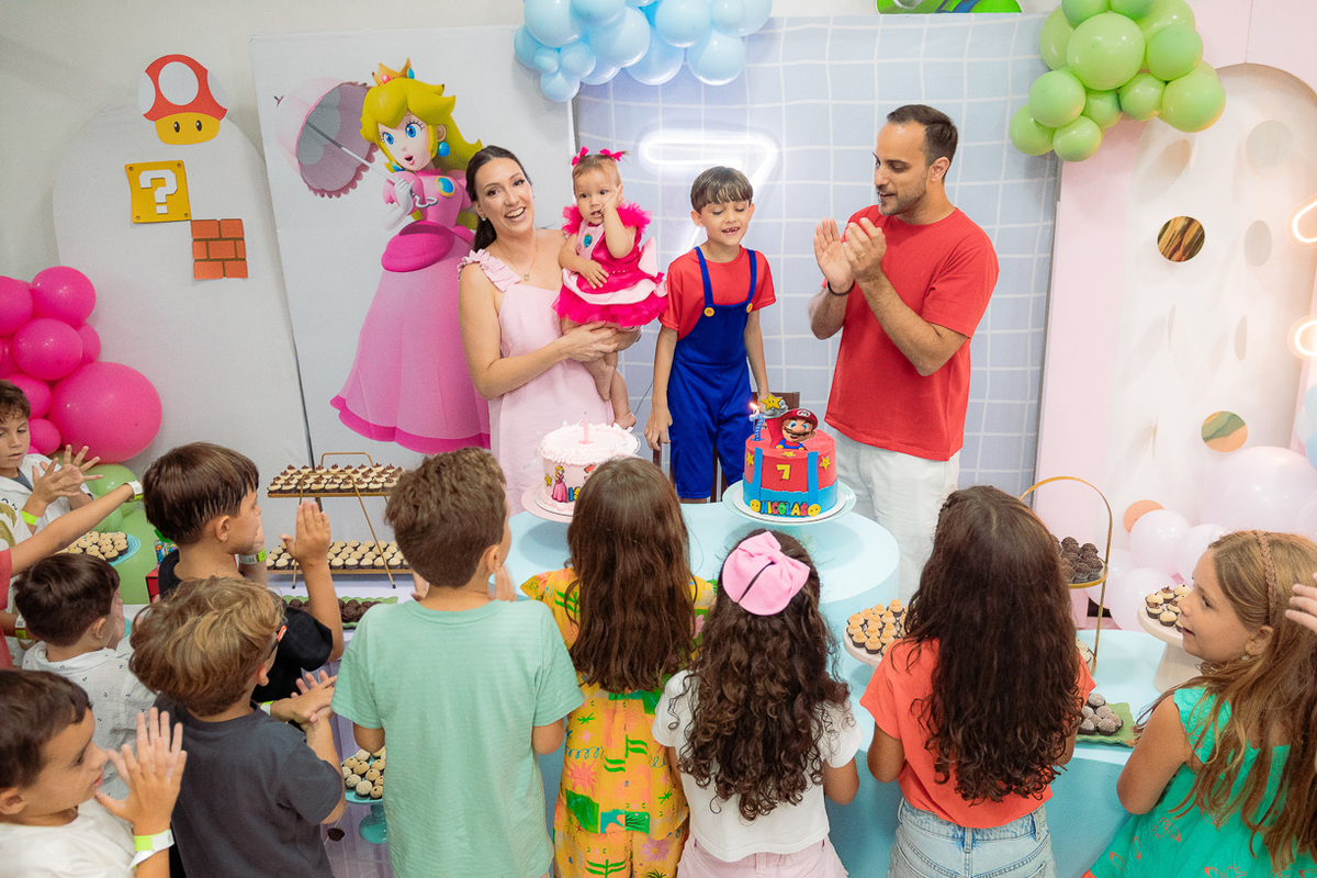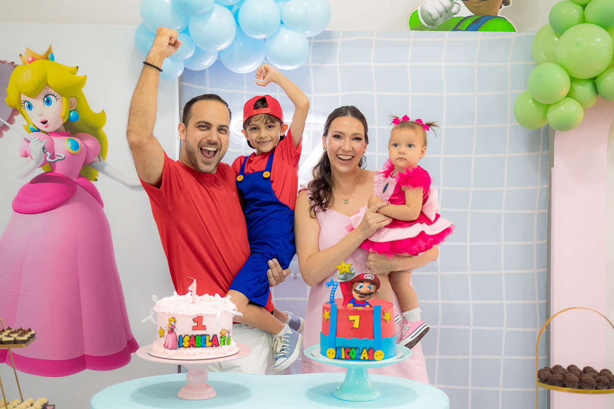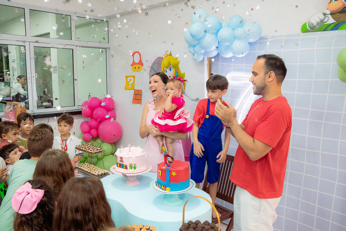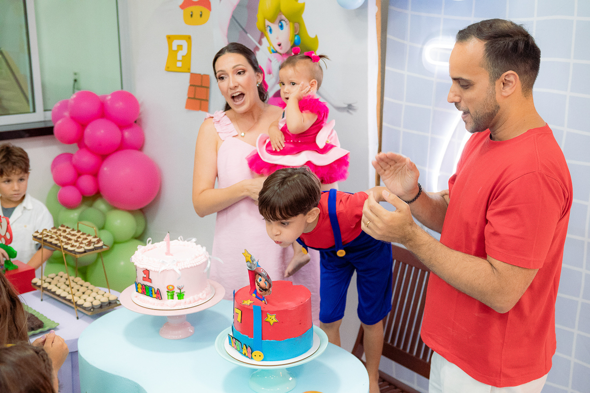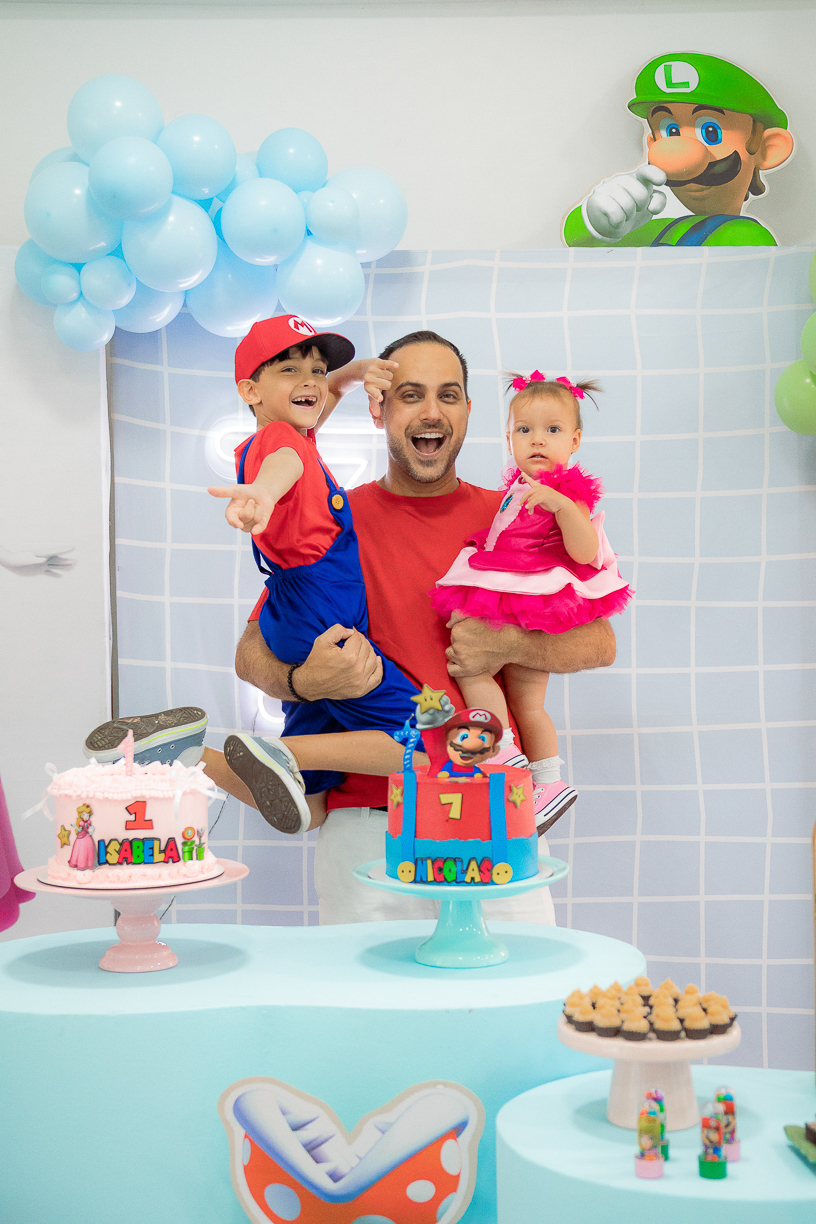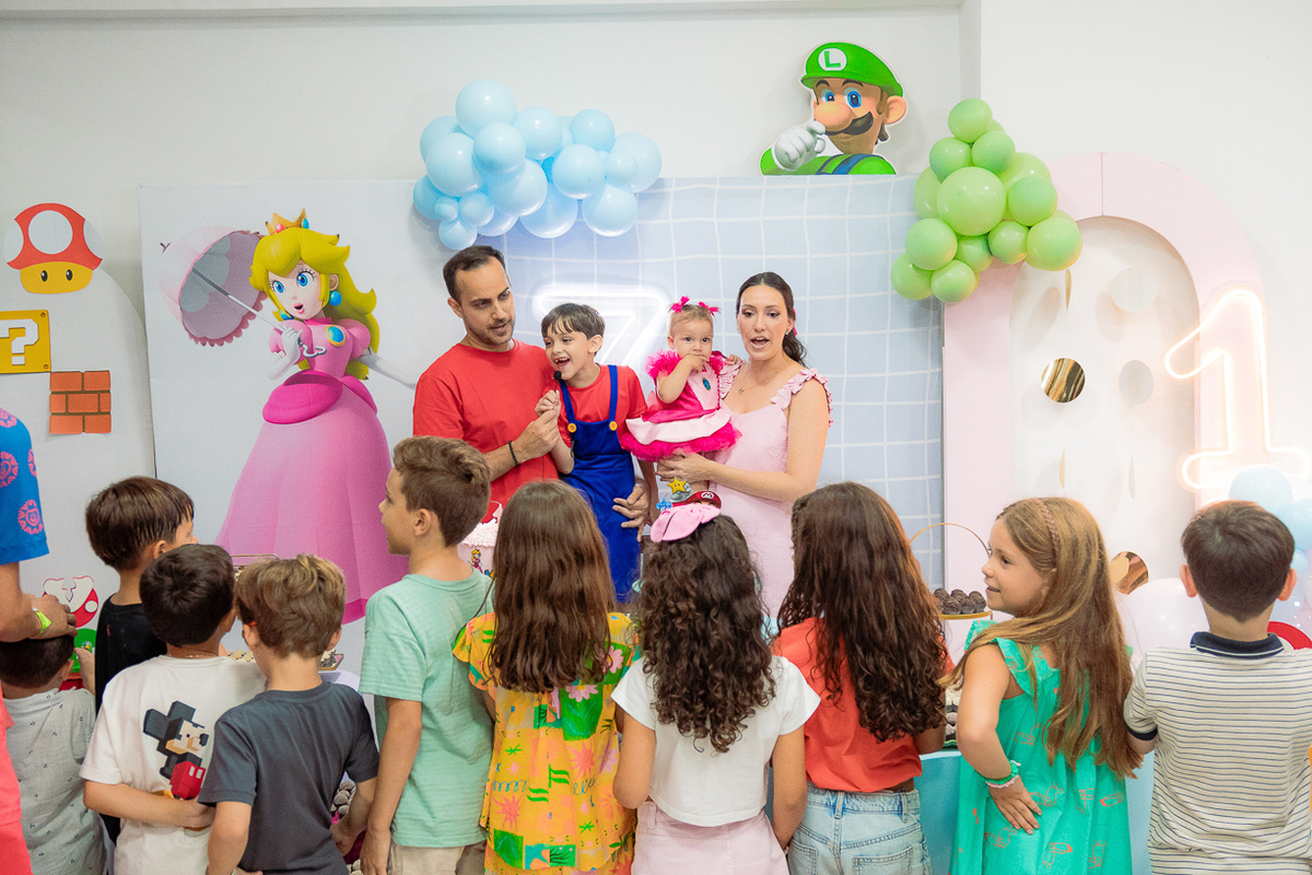 Sabe aqueles que só existem na imaginação das crianças? O tema Super Mario ganhou vida com cores vibrantes, risadas e pequenos detalhes que transformaram o espaço em um reino digno dos jogos.