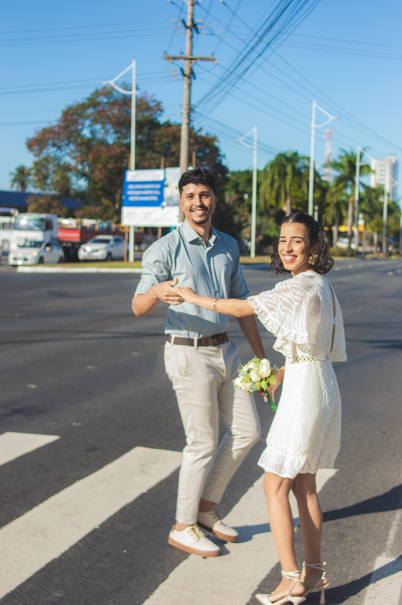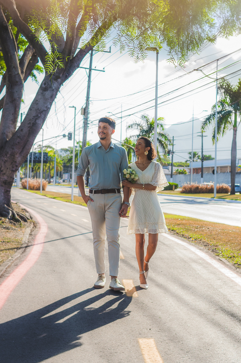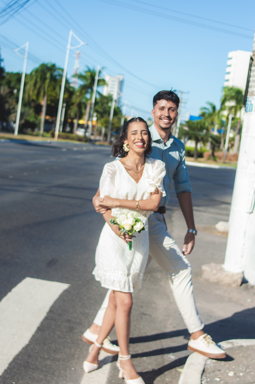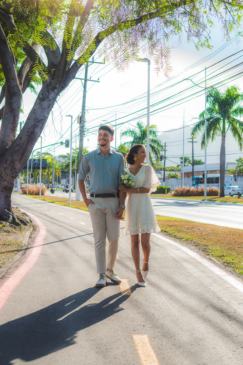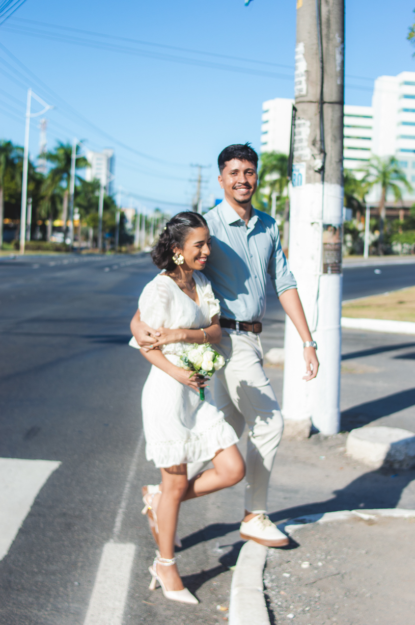 Após o registro oficial, o casal viveu um ensaio pós-casamento cheio de leveza. As ruas viraram cenário, o vento se tornou cúmplice e cada clique refletiu o amor jovem e genuíno que une os dois.