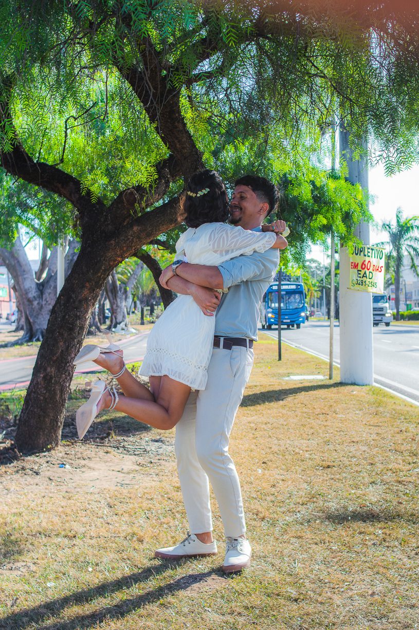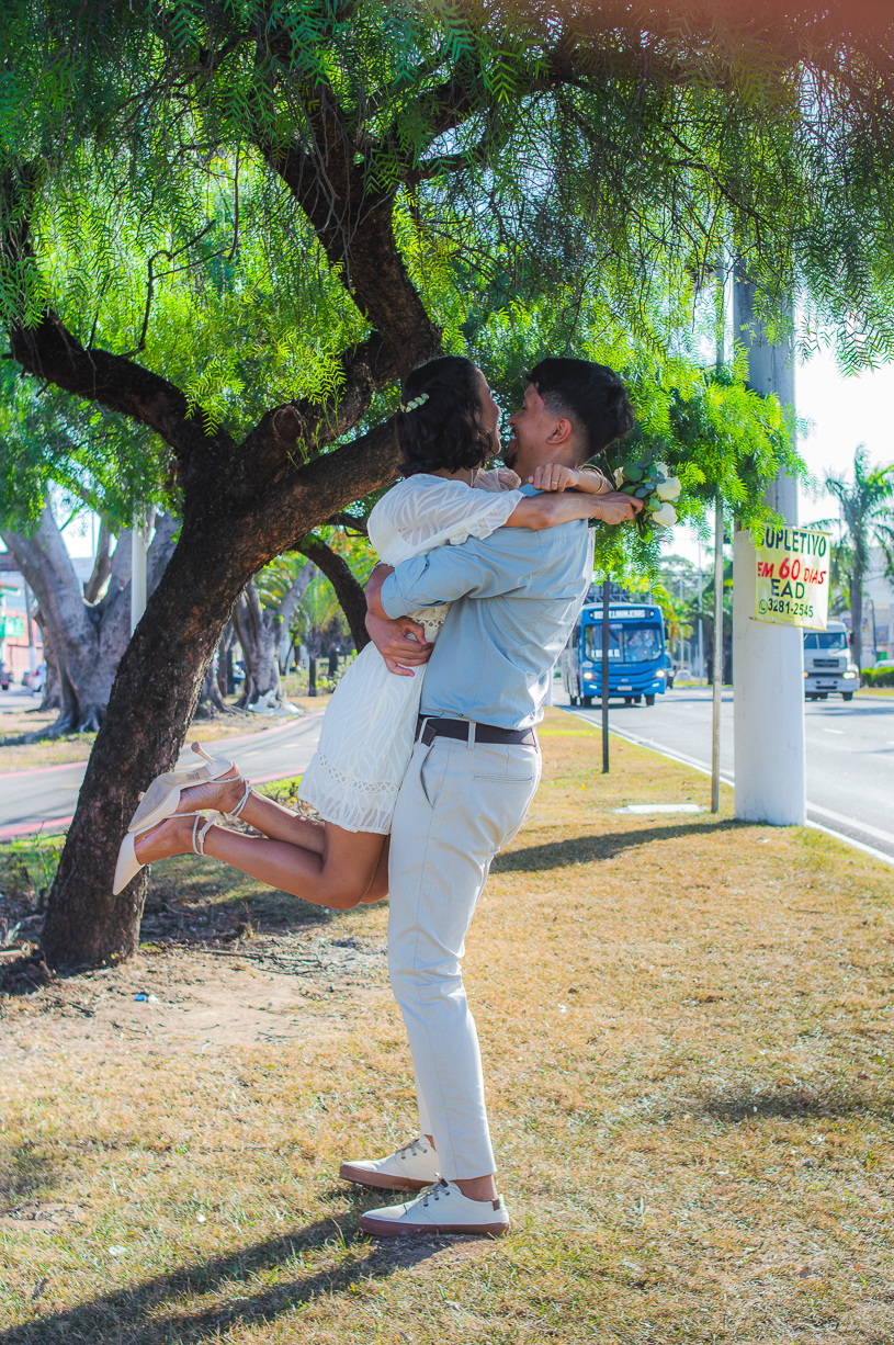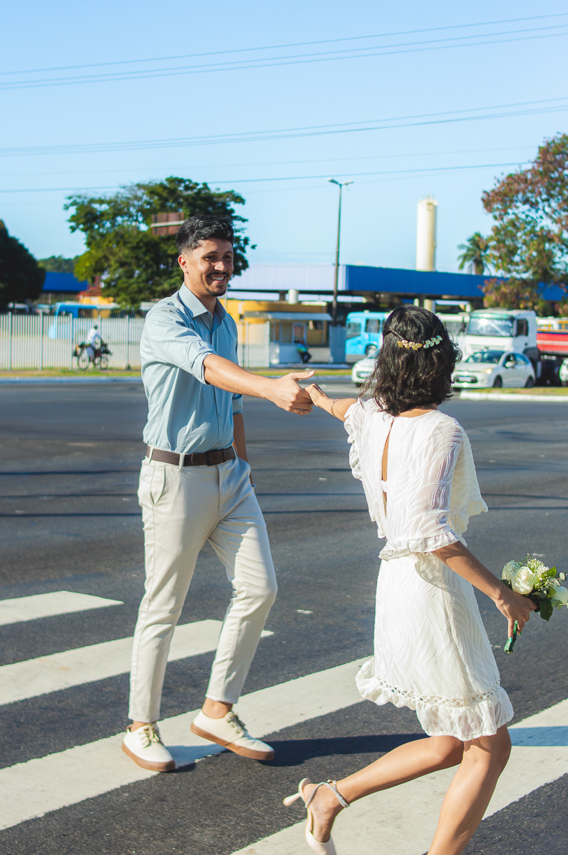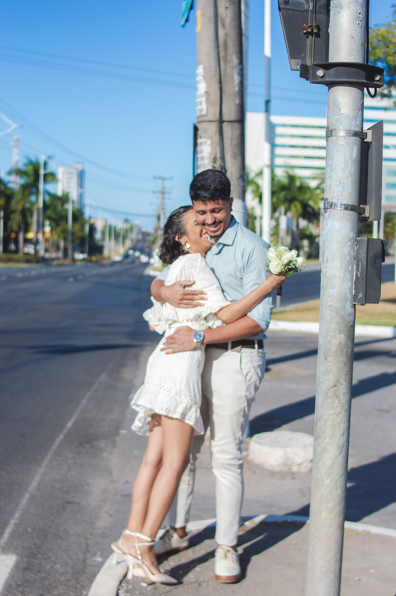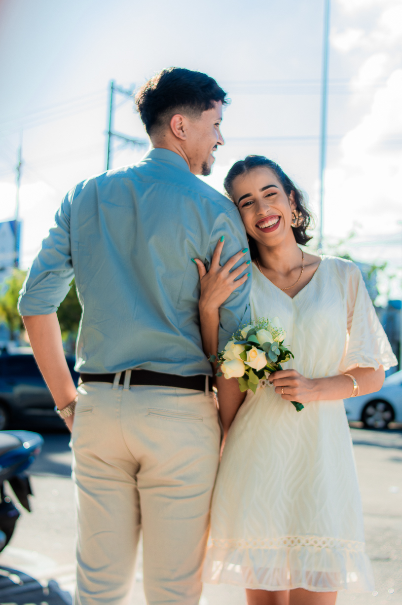Após o registro oficial, o casal viveu um ensaio pós-casamento cheio de leveza. As ruas viraram cenário, o vento se tornou cúmplice e cada clique refletiu o amor jovem e genuíno que une os dois.