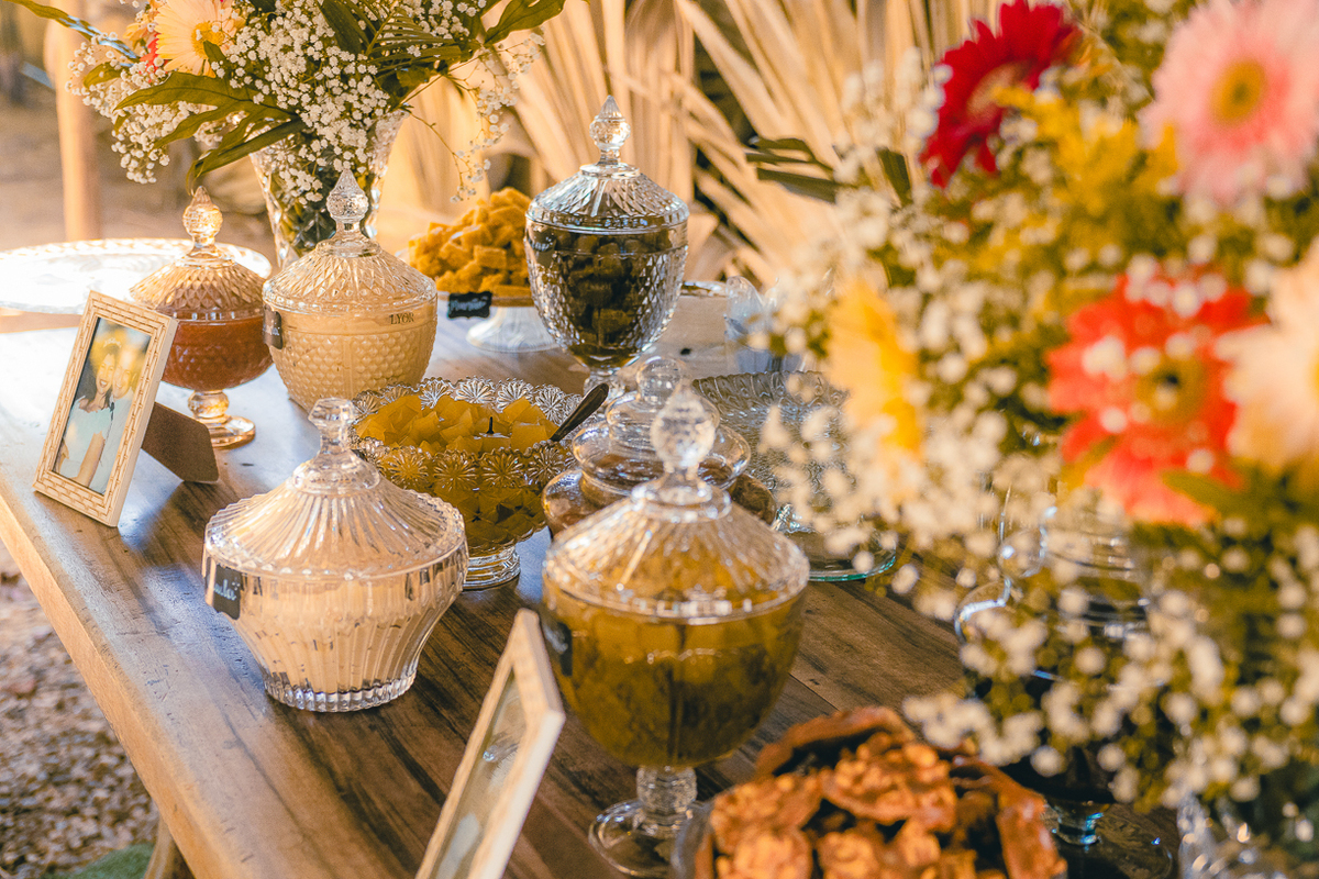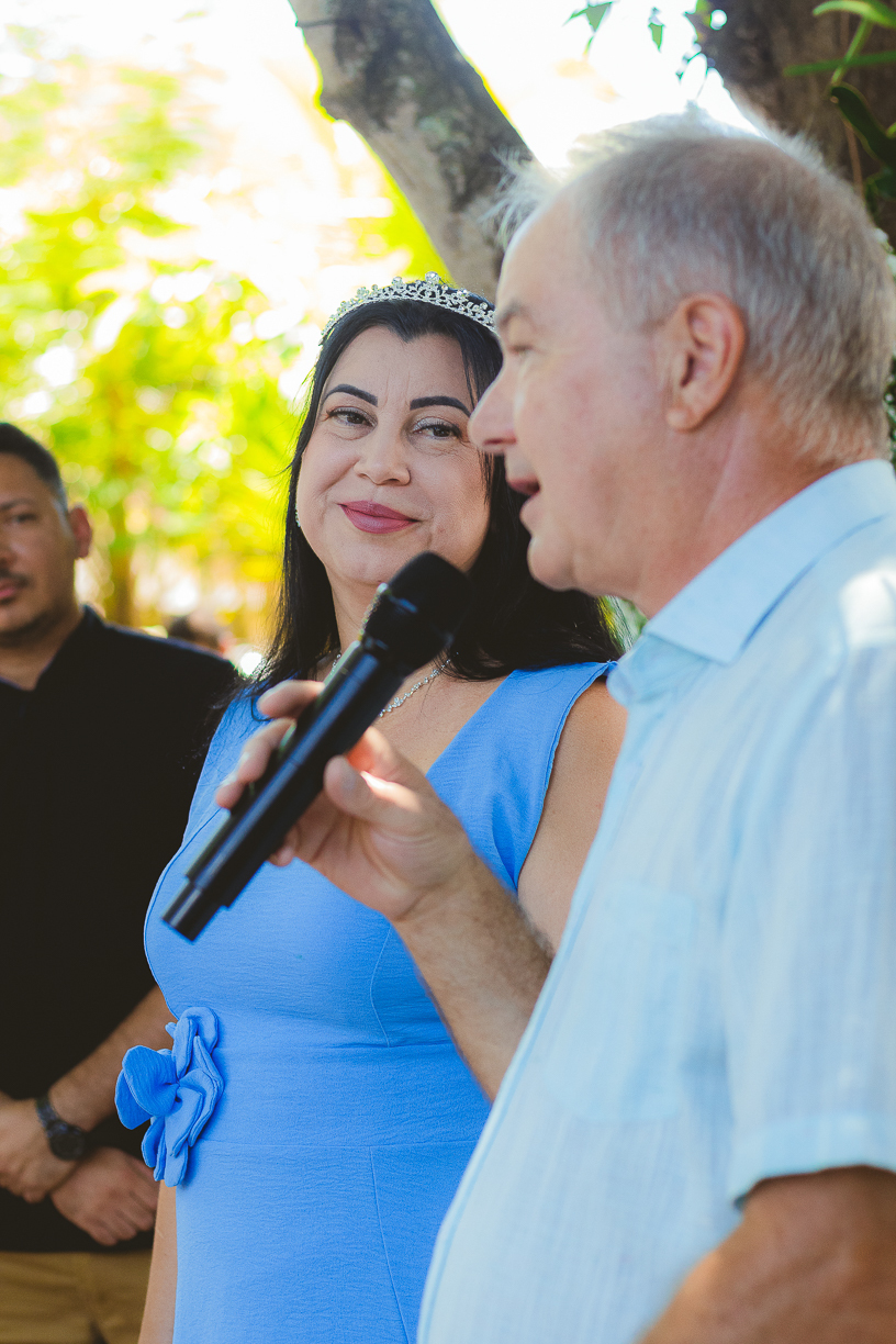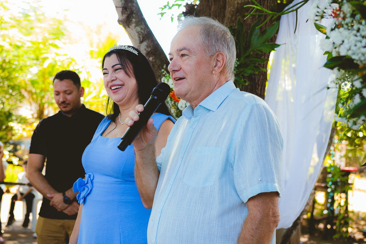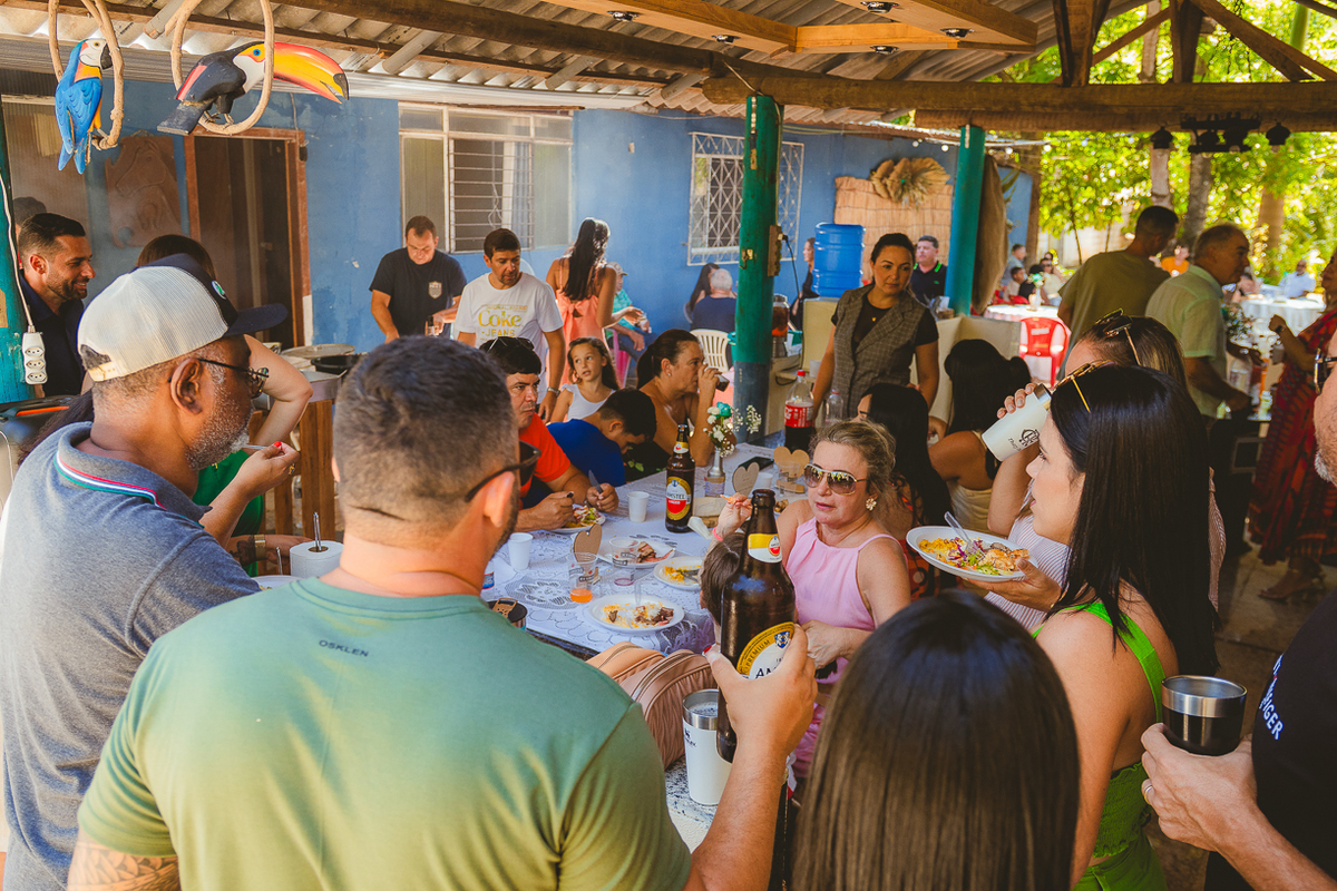 Entre amigos e familiares, a tarde se encheu de lembranças, risadas e emoção. As mesas decoradas com flores naturais, o cheiro da comida caseira, as músicas que embalaram o começo de uma história... tudo parecia conversar com o passado e o presente ao mesmo tempo.