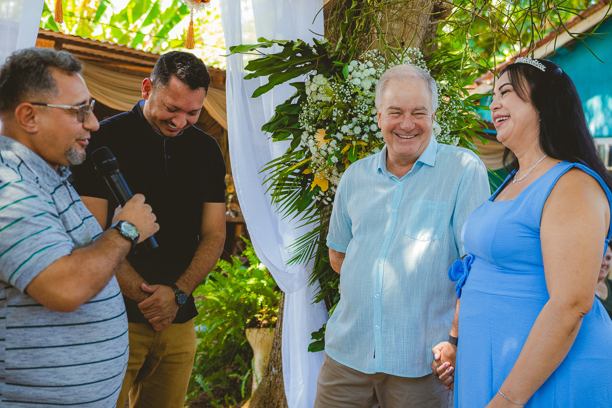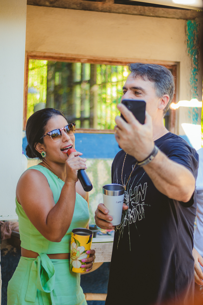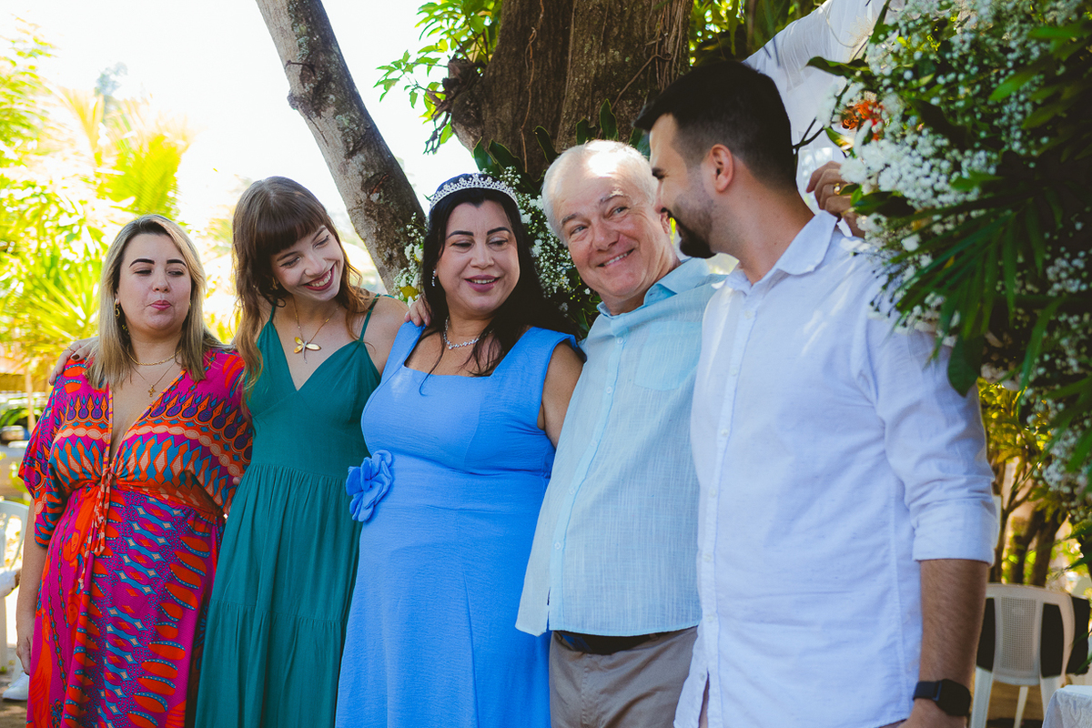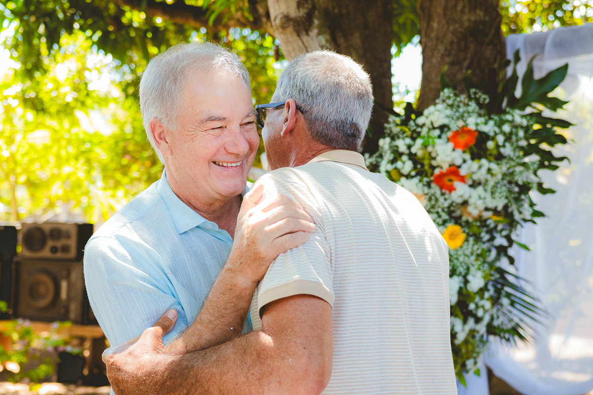 Entre amigos e familiares, a tarde se encheu de lembranças, risadas e emoção. As mesas decoradas com flores naturais, o cheiro da comida caseira, as músicas que embalaram o começo de uma história... tudo parecia conversar com o passado e o presente ao mesmo tempo.