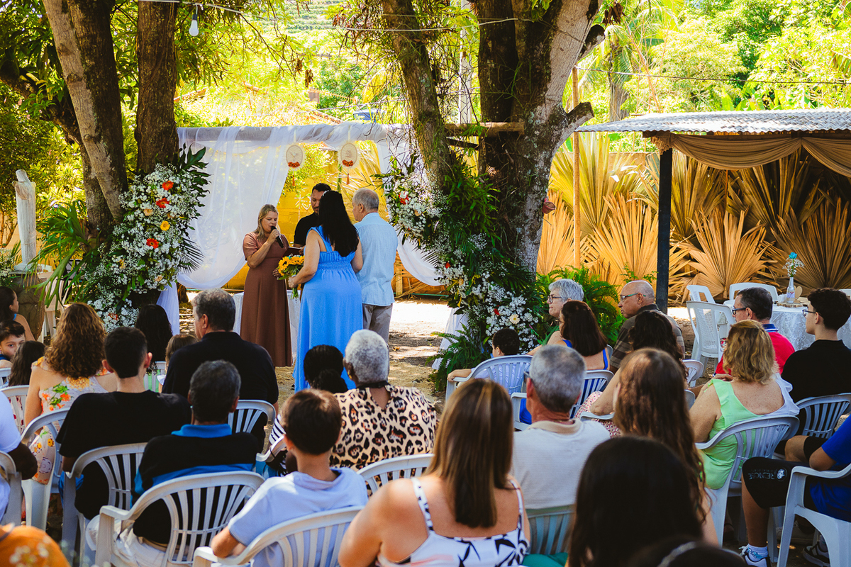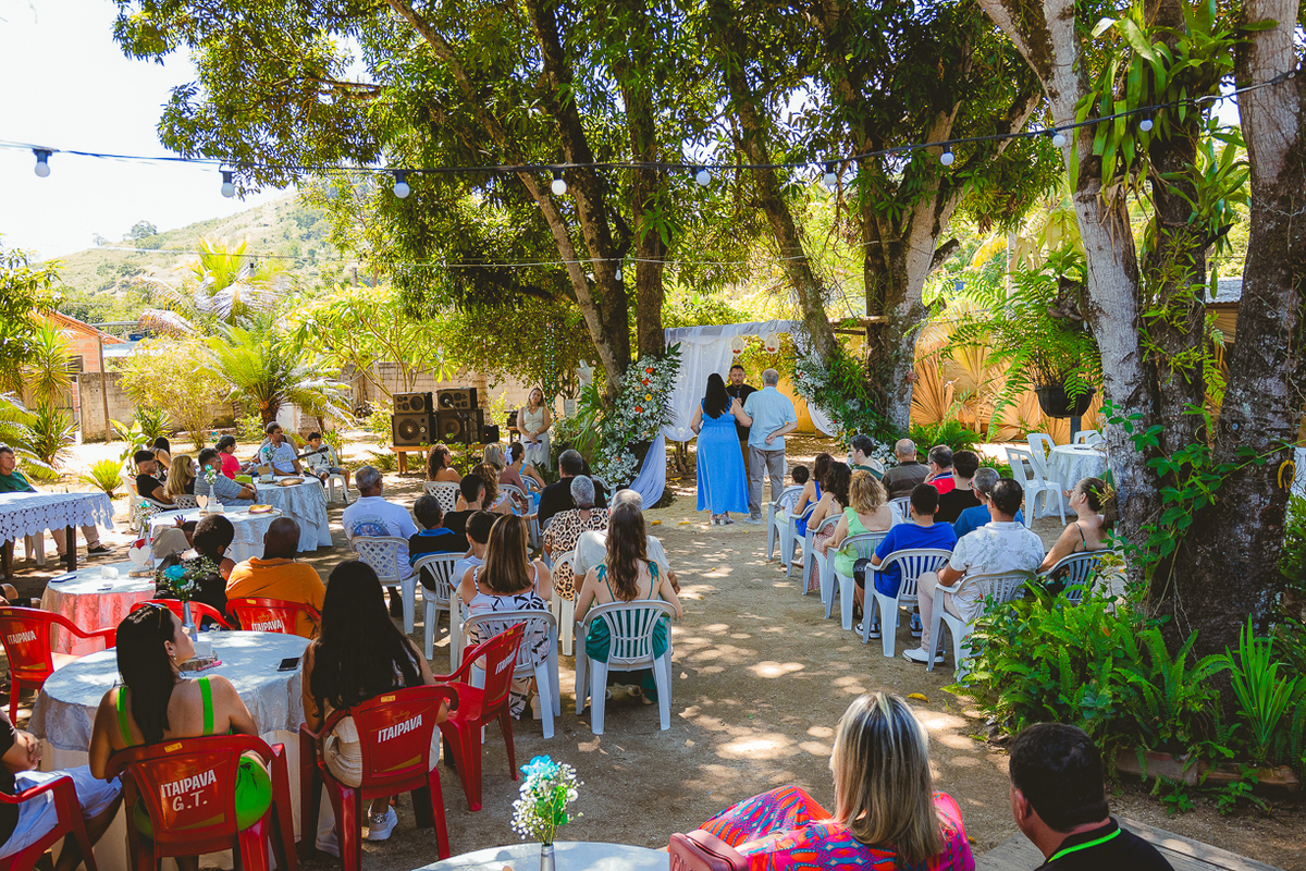 Em Itaoca Pedra, sob o céu tranquilo do campo, Crisciam celebrou 25 anos de um amor que resiste ao tempo. A cerimônia, realizada no próprio sítio da família, foi um reencontro com as origens — o mesmo solo que viu o amor nascer, agora testemunhava sua maturidade.