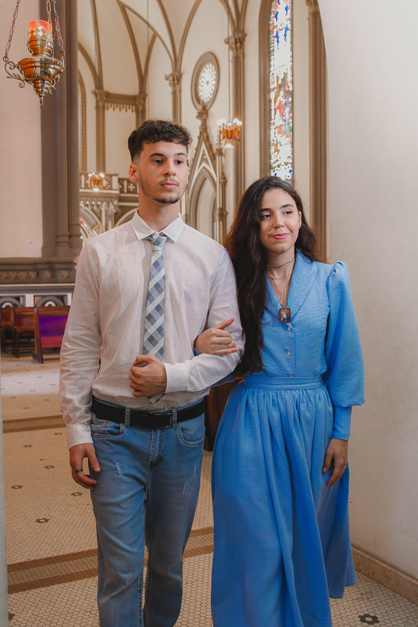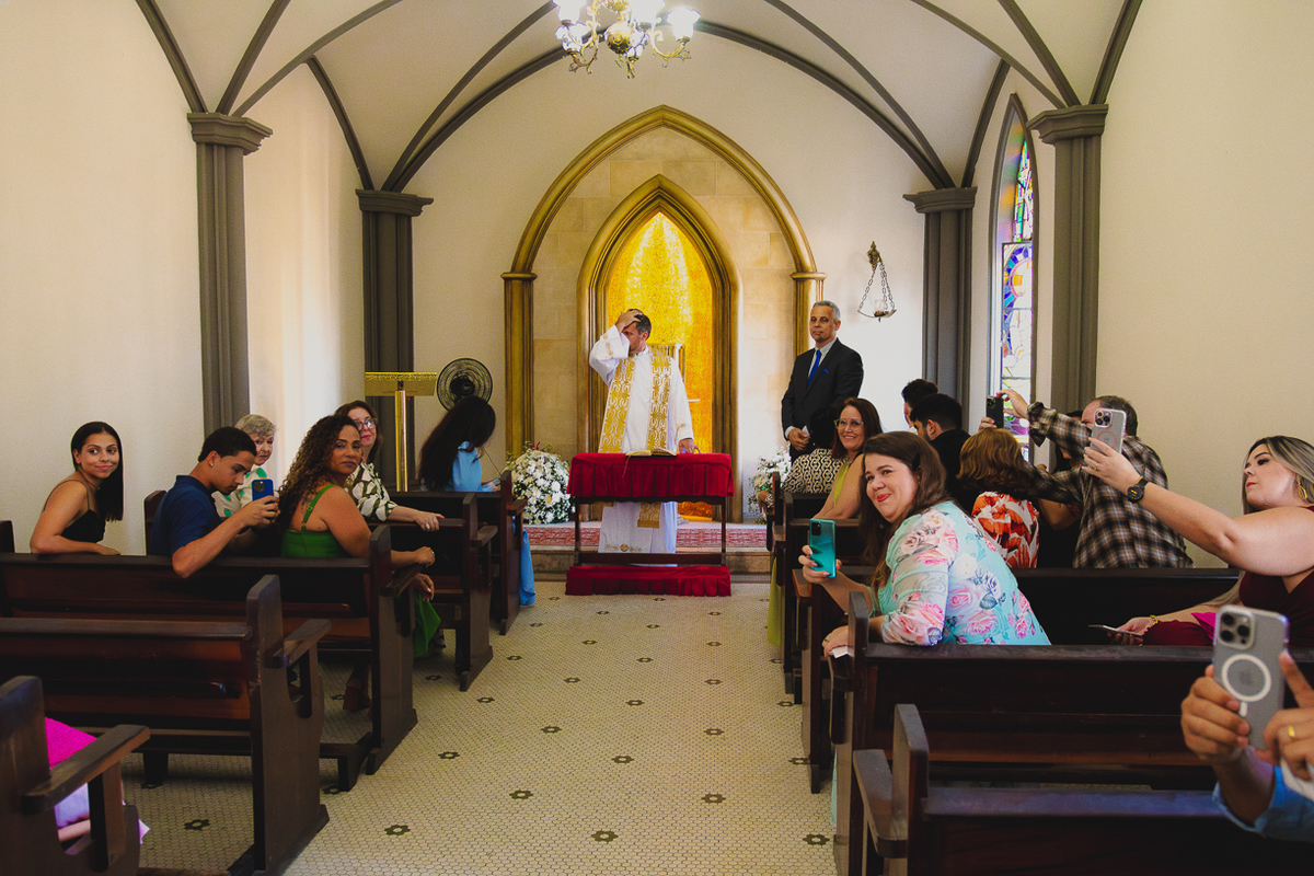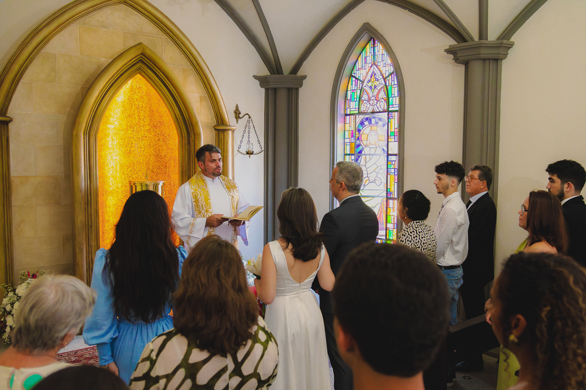 Cláudia e Fernando celebraram suas Bodas de Prata em uma linda cerimônia na capela da Catedral de Vitória, um momento reservado, íntimo e repleto de emoção. A família, vinda de longe, se reuniu para testemunhar mais uma vez o amor que os une.