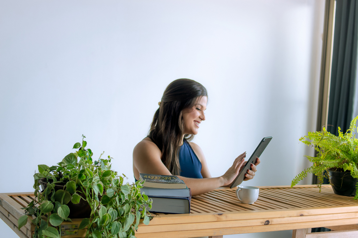 Busquei transmitir, por meio das imagens, a leveza e empatia que compõem sua personalidade, mas também a credibilidade e segurança que um profissional da área precisa inspirar.