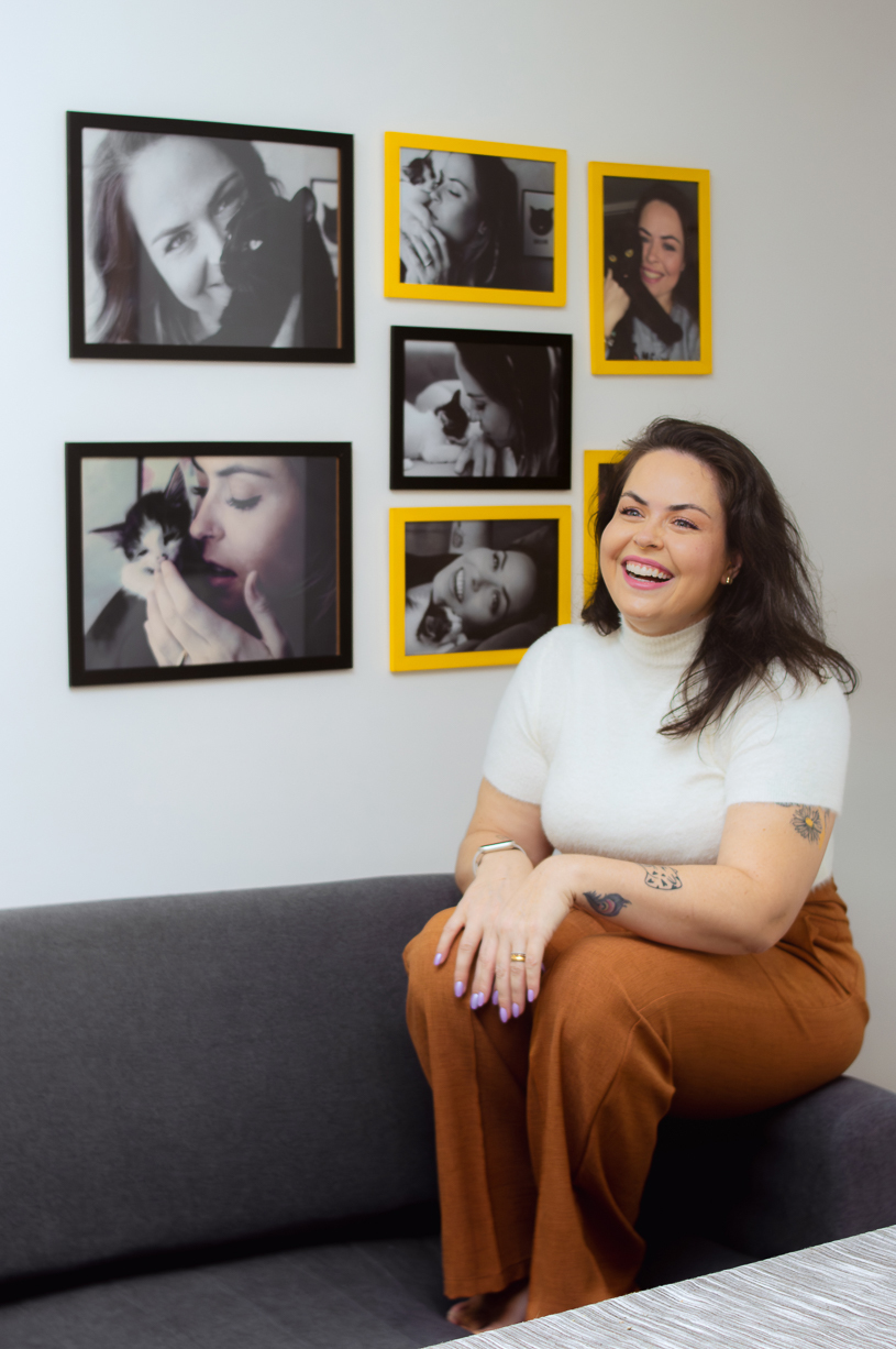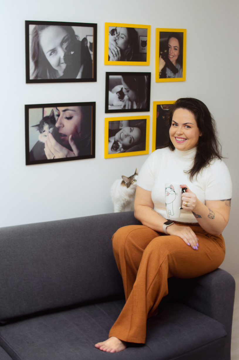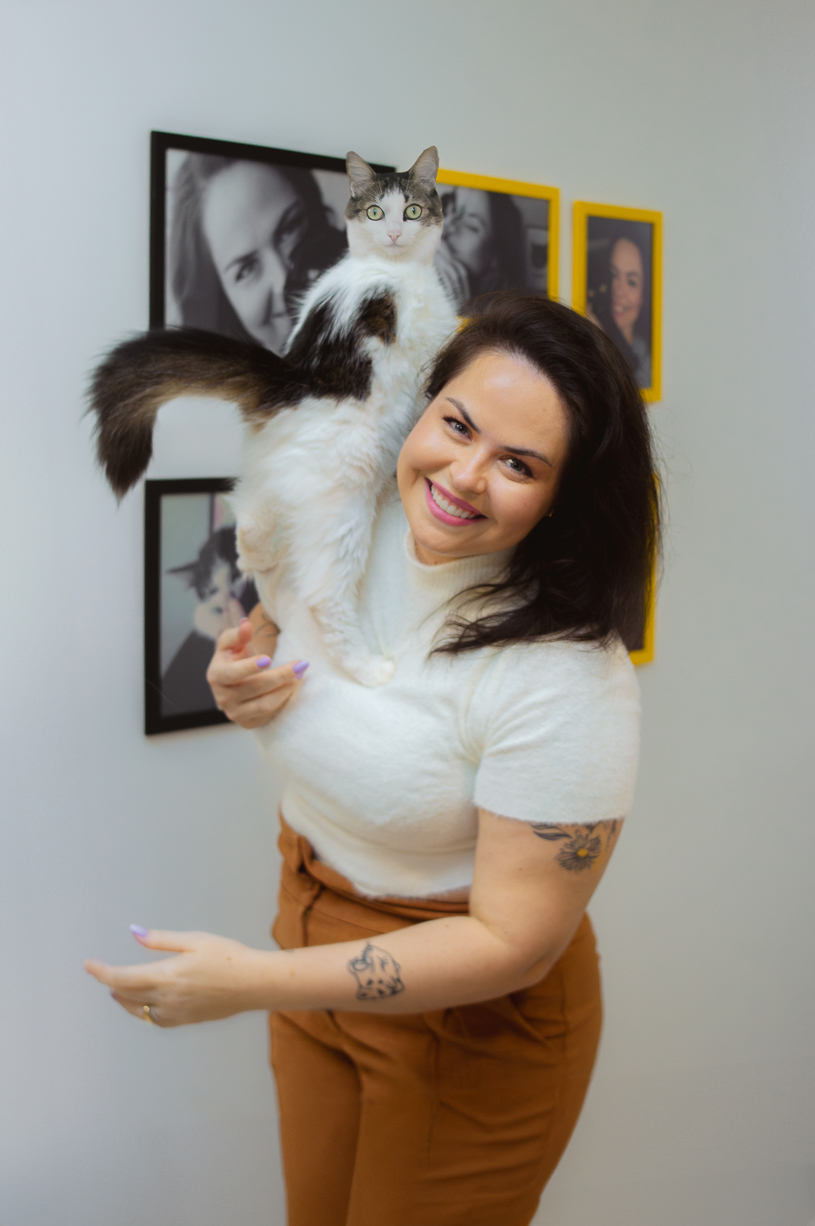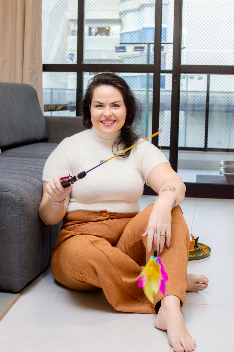 O ensaio da Manuela, catsitter e educadora felina, teve como foco mostrar o amor genuíno pelos seus gatos, que são parte essencial da sua vida e também da sua profissão. Fotografamos em um ambiente natural, a casa dela, transmitindo acolhimento, confiança e autenticidade.
