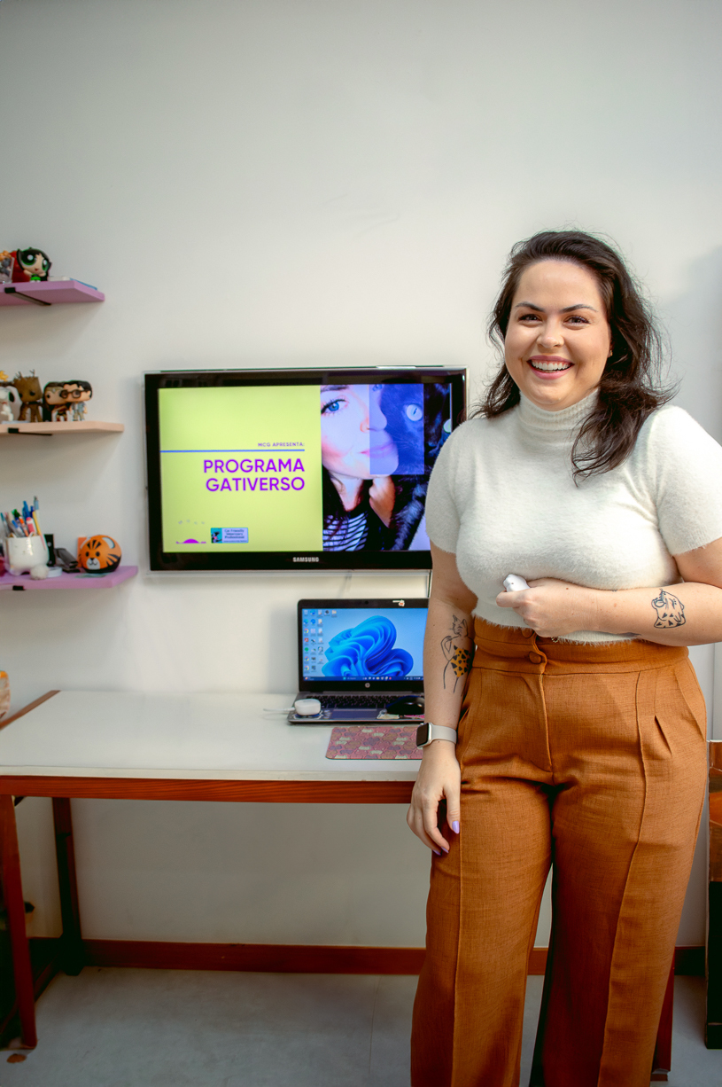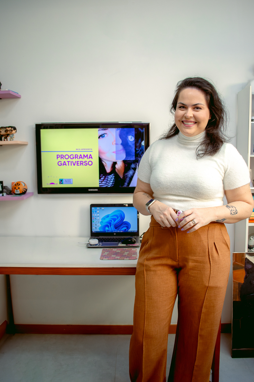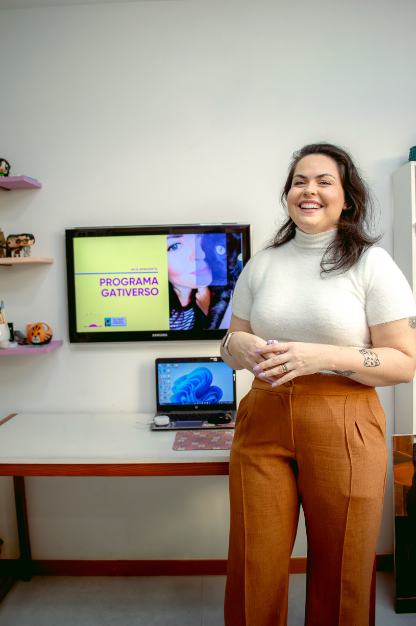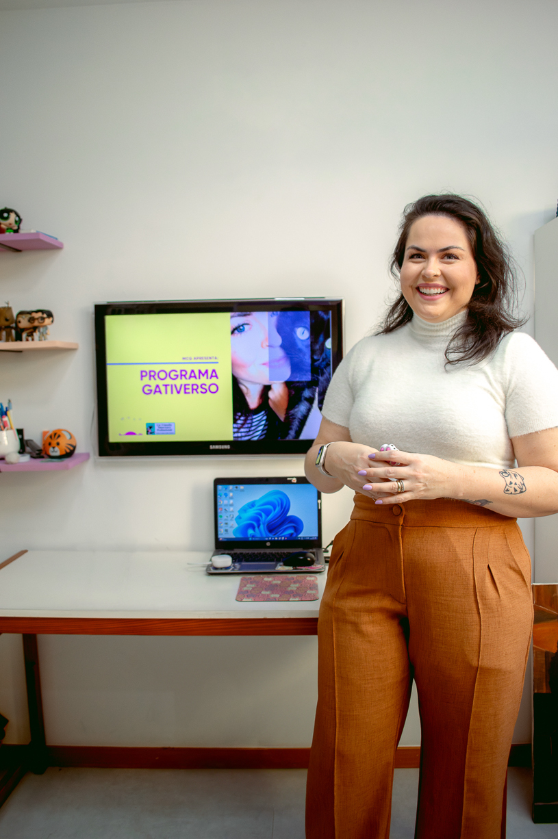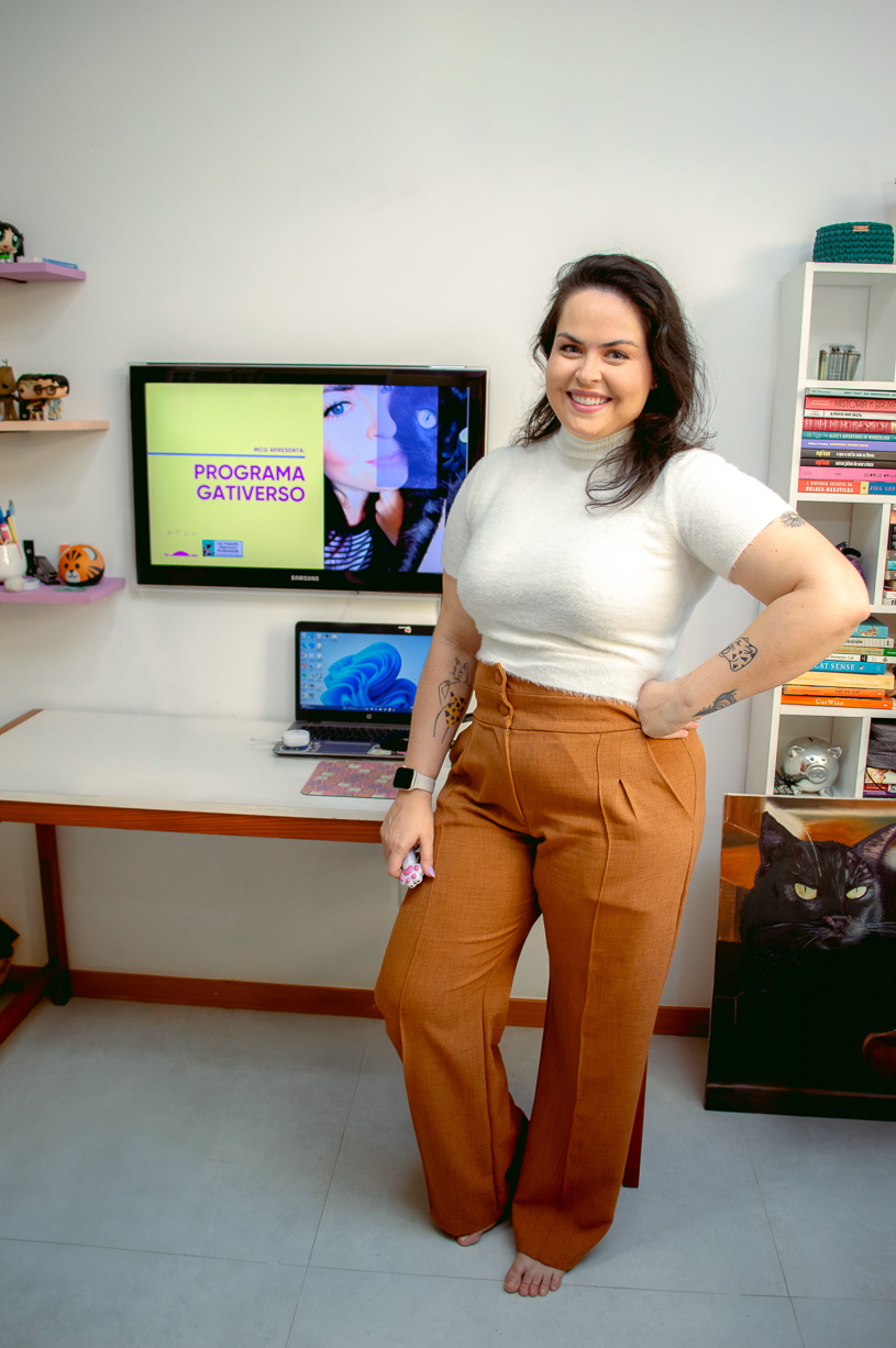 O ensaio da Manuela, catsitter e educadora felina, teve como foco mostrar o amor genuíno pelos seus gatos, que são parte essencial da sua vida e também da sua profissão. Fotografamos em um ambiente natural, a casa dela, transmitindo acolhimento, confiança e autenticidade.