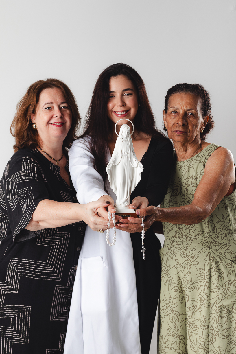 A família veio de longe para celebrar junto, carregando na bagagem não apenas presentes, mas memórias, fé e amor. Entre os objetos que fizeram parte do ensaio, cada clique parecia uma oração silenciosa, um agradecimento por tudo que já foi vivido e pelo que ainda virá.