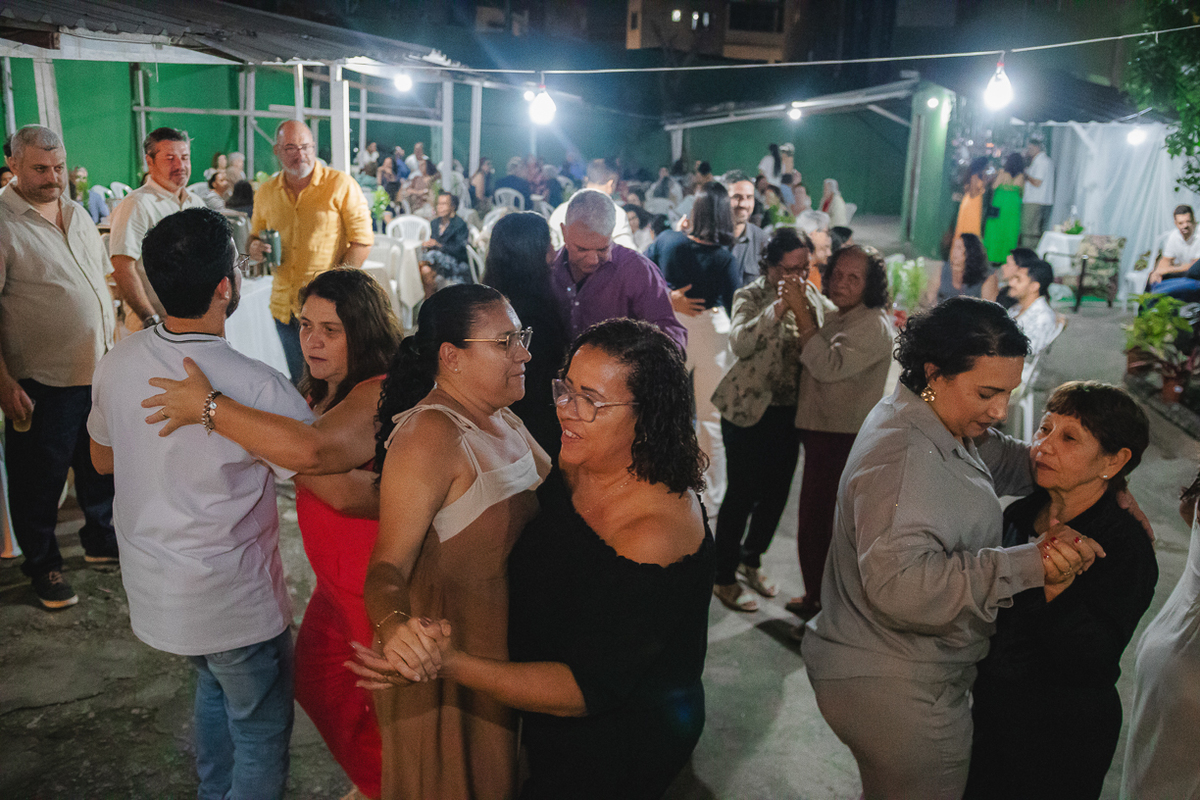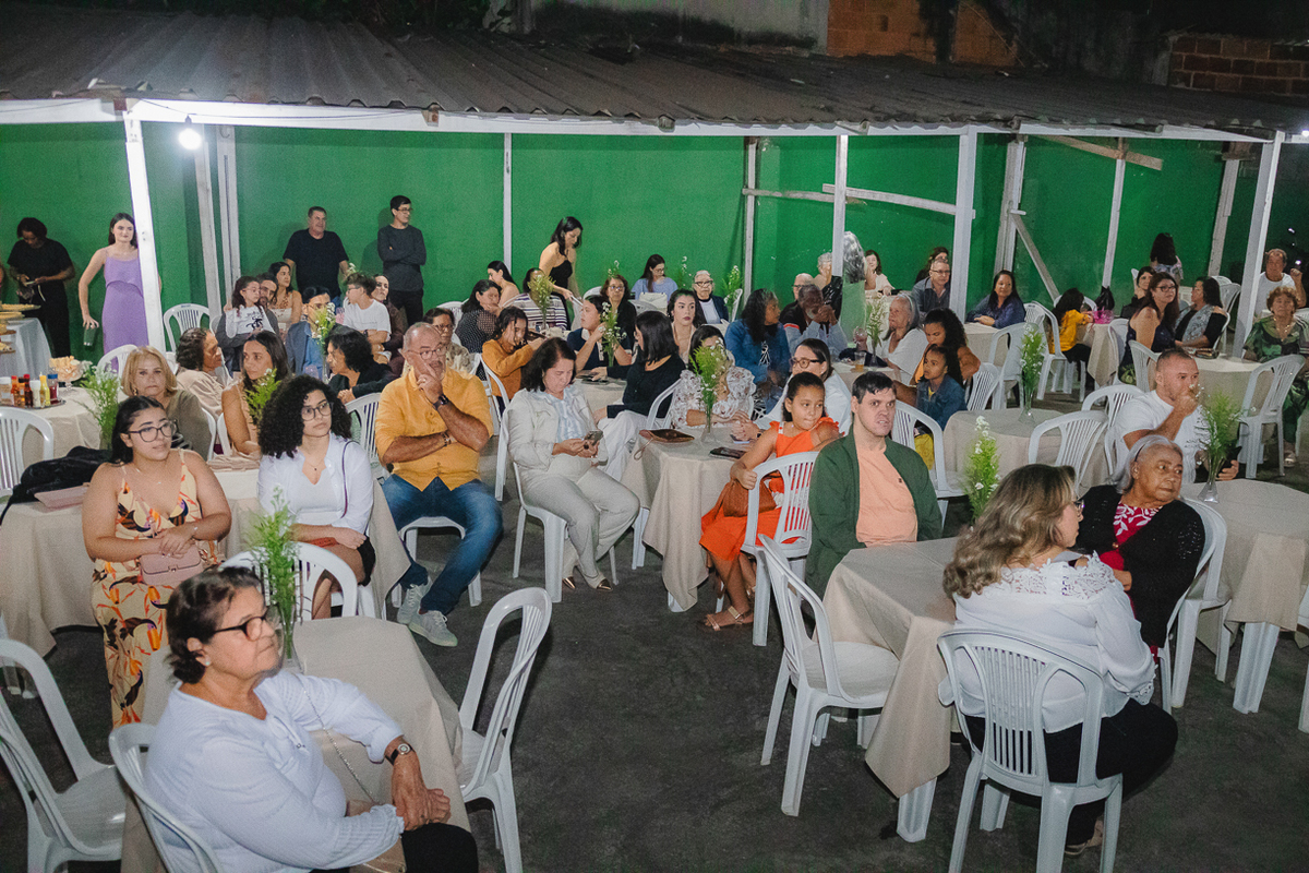 No quintal da casa da Dona Luiza, a tarde ganhou o brilho do amor e da memória. Setenta anos de história foram celebrados com comida boa, música animada e uma energia contagiante que tomou conta de todos. O forró embalava passos alegres, enquanto o riso ecoava entre gerações.