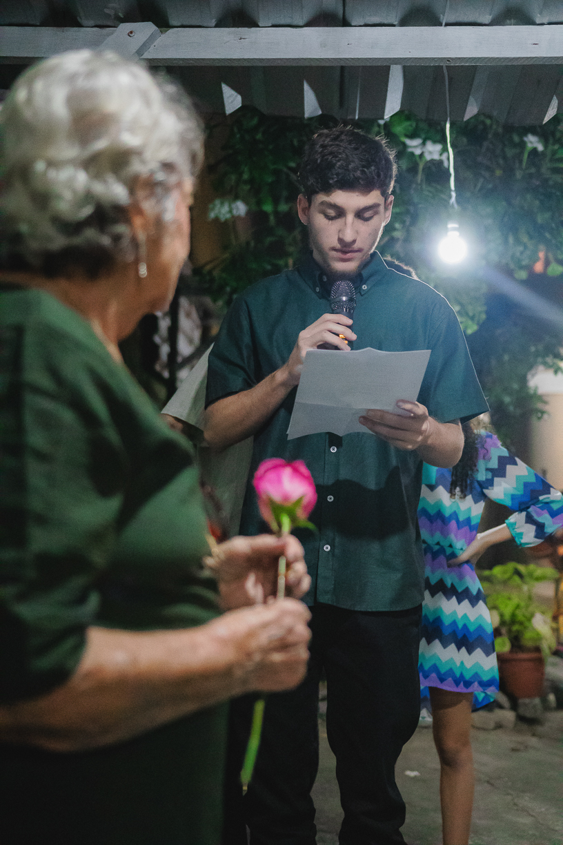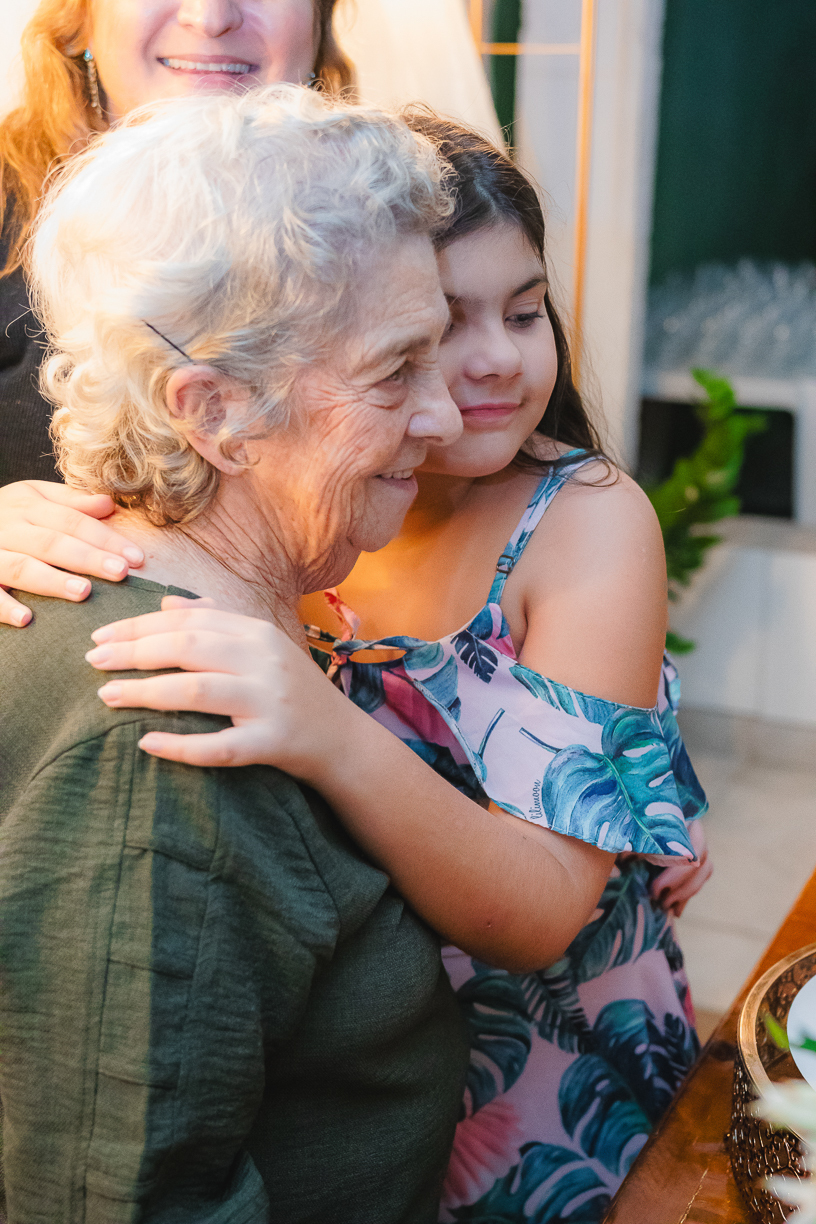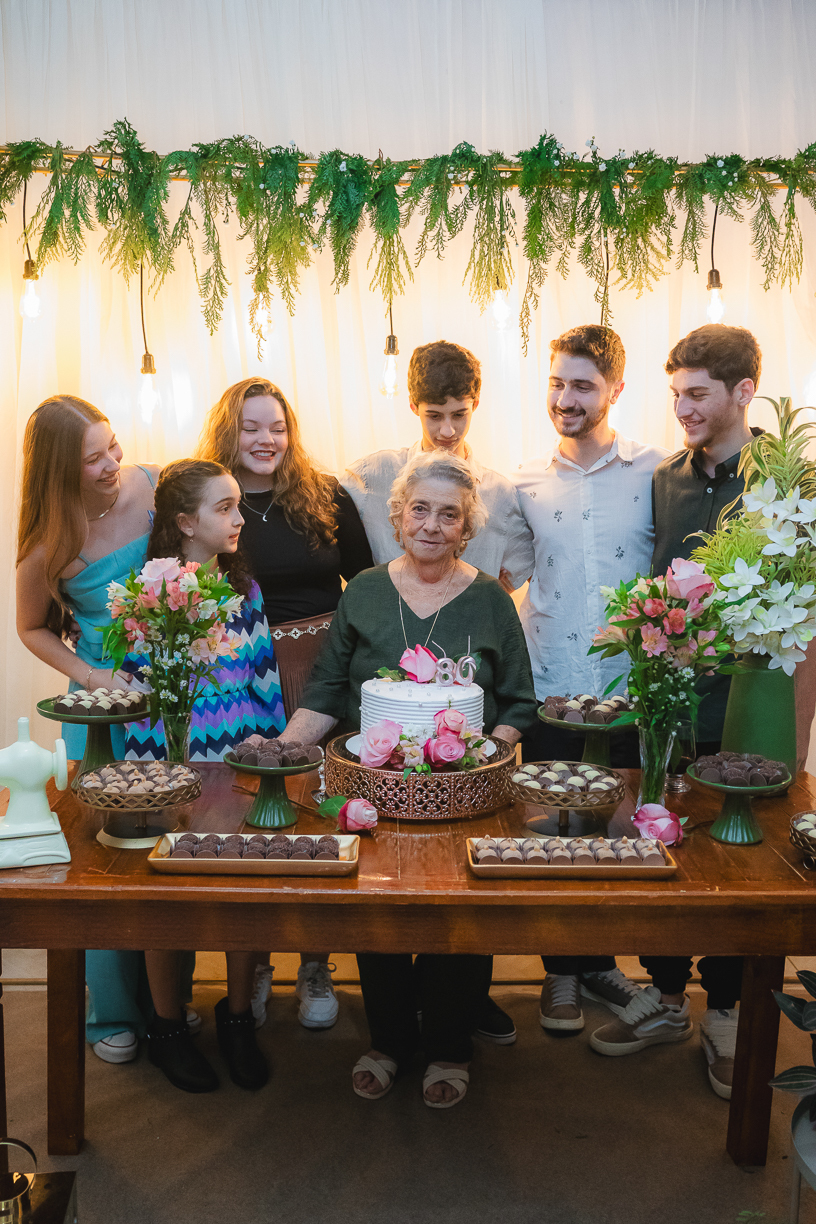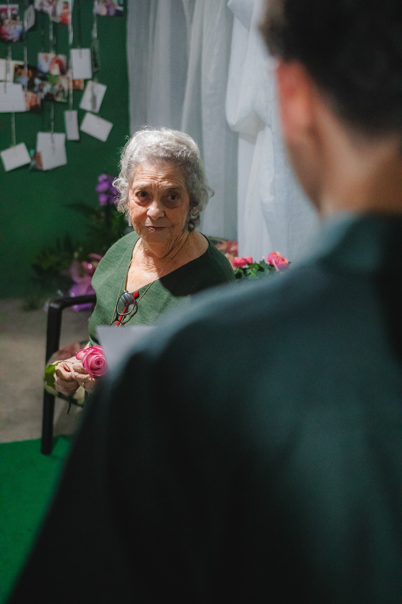 No momento mais emocionante, os netos — com olhos marejados e corações cheios — leram cartas de amor e entregaram rosas, uma a uma, para a avó. Um gesto simples, mas cheio de significado.