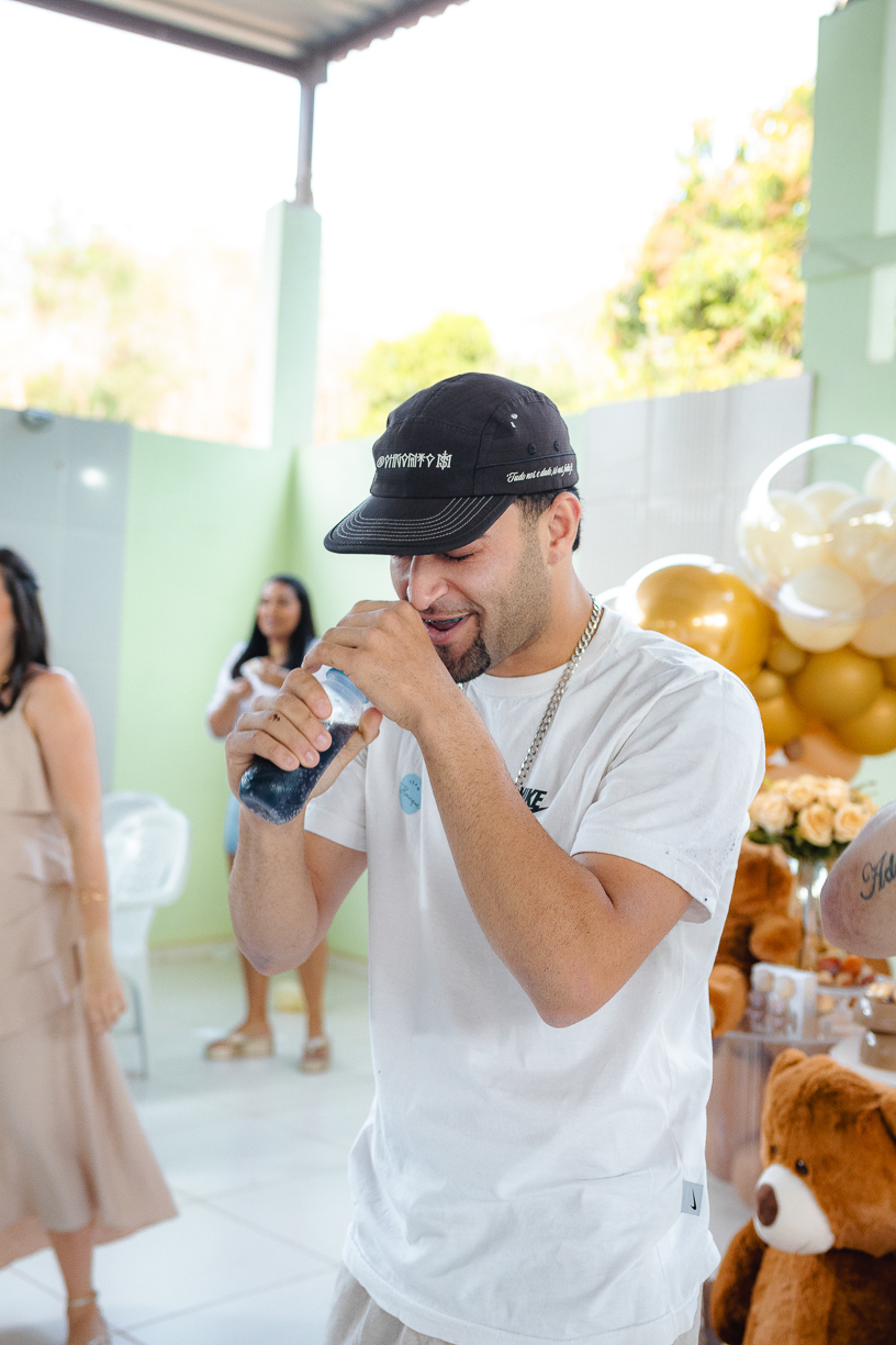 Um chá revelação cheio de energia e alegria! Familia e amigos se reuniram divididos entre os times “Menino ou Menina?”, cada um com seus palpites e adesivos temáticos.