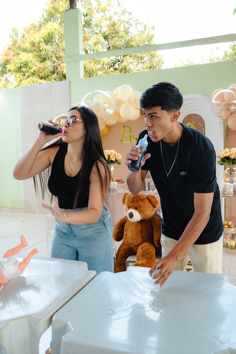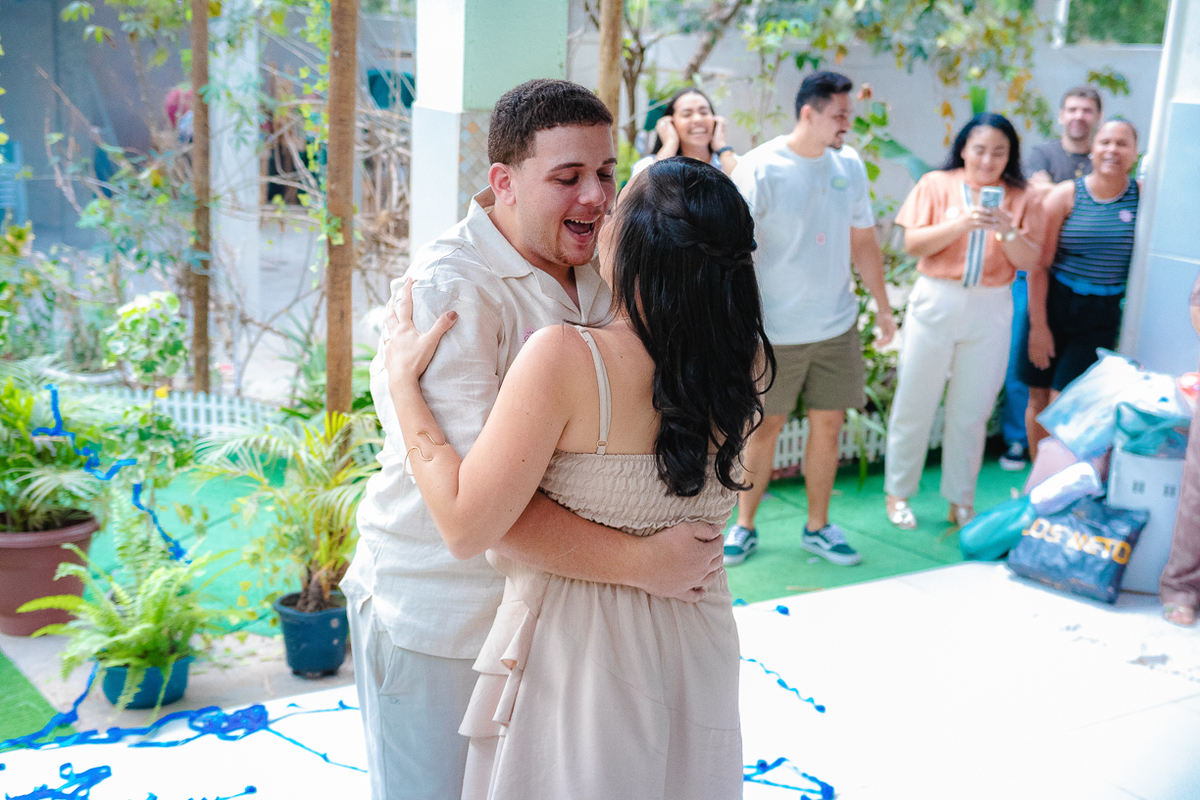 Entre brincadeiras divertidas e risadas que estavam por todo o ambiente, a atmosfera era de amor e união. O casal, cercado por carinho, viveu um dia inesquecível... Daqueles que o coração guarda pra sempre.