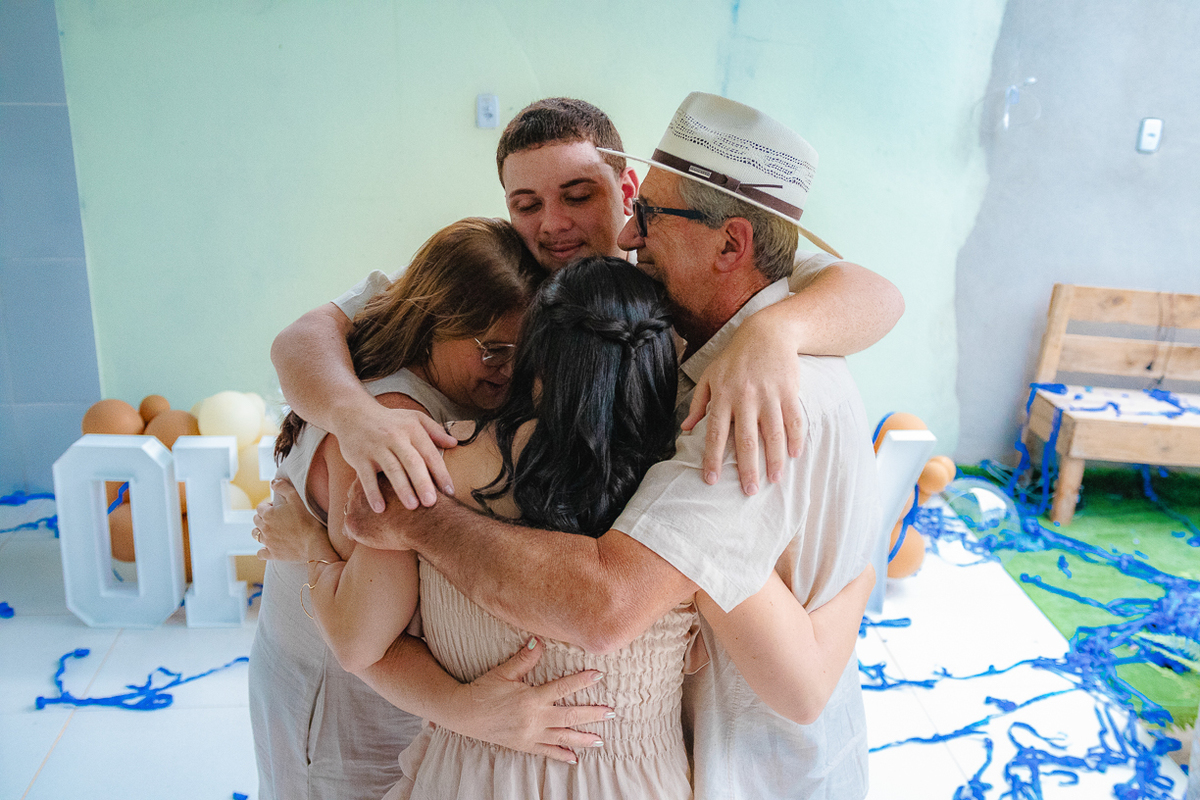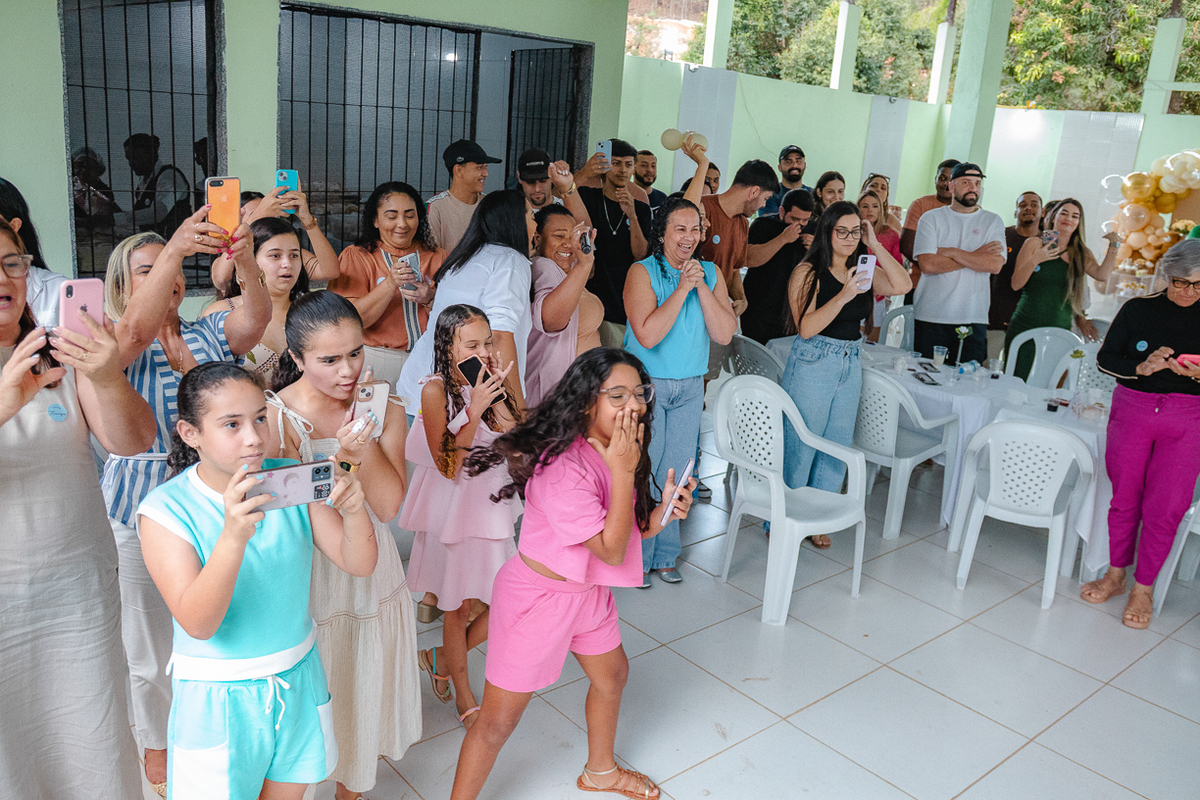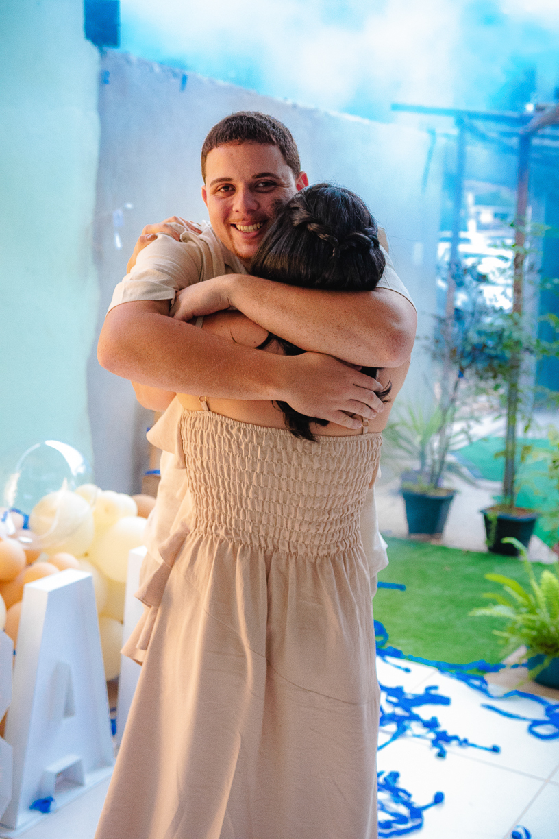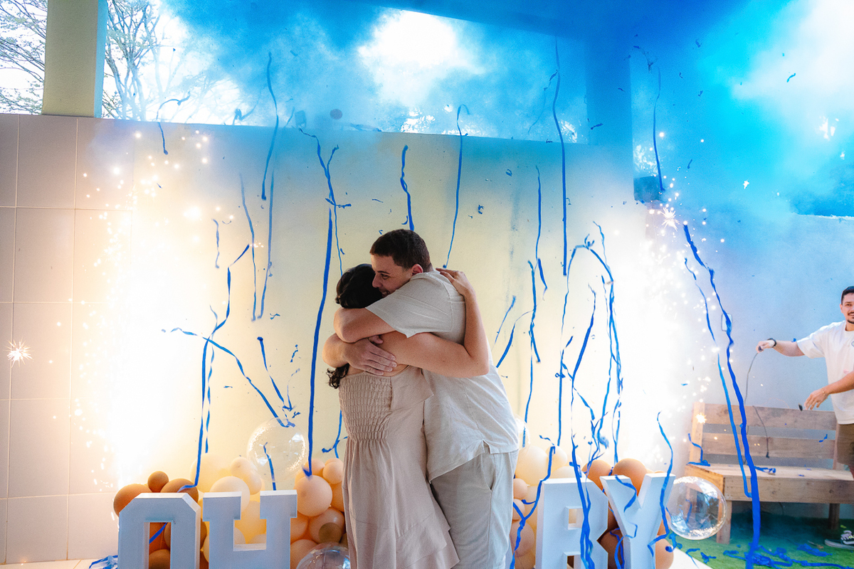 No instante da revelação, a surpresa tomou conta: 3, 2, 1... Henrique vem aí! Um momento repleto de lágrimas, abraços e felicidade na família.