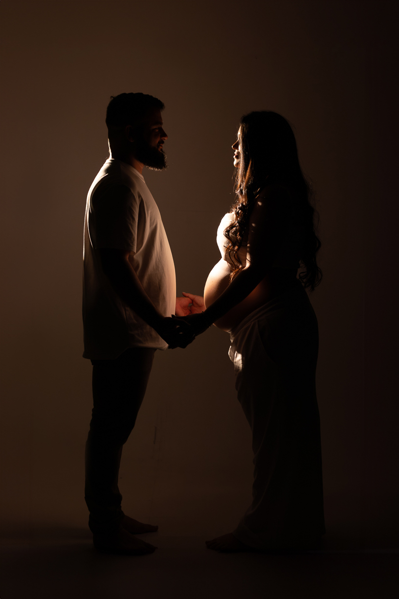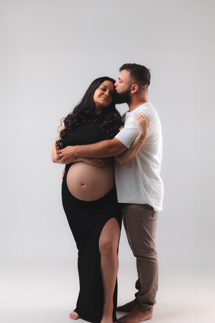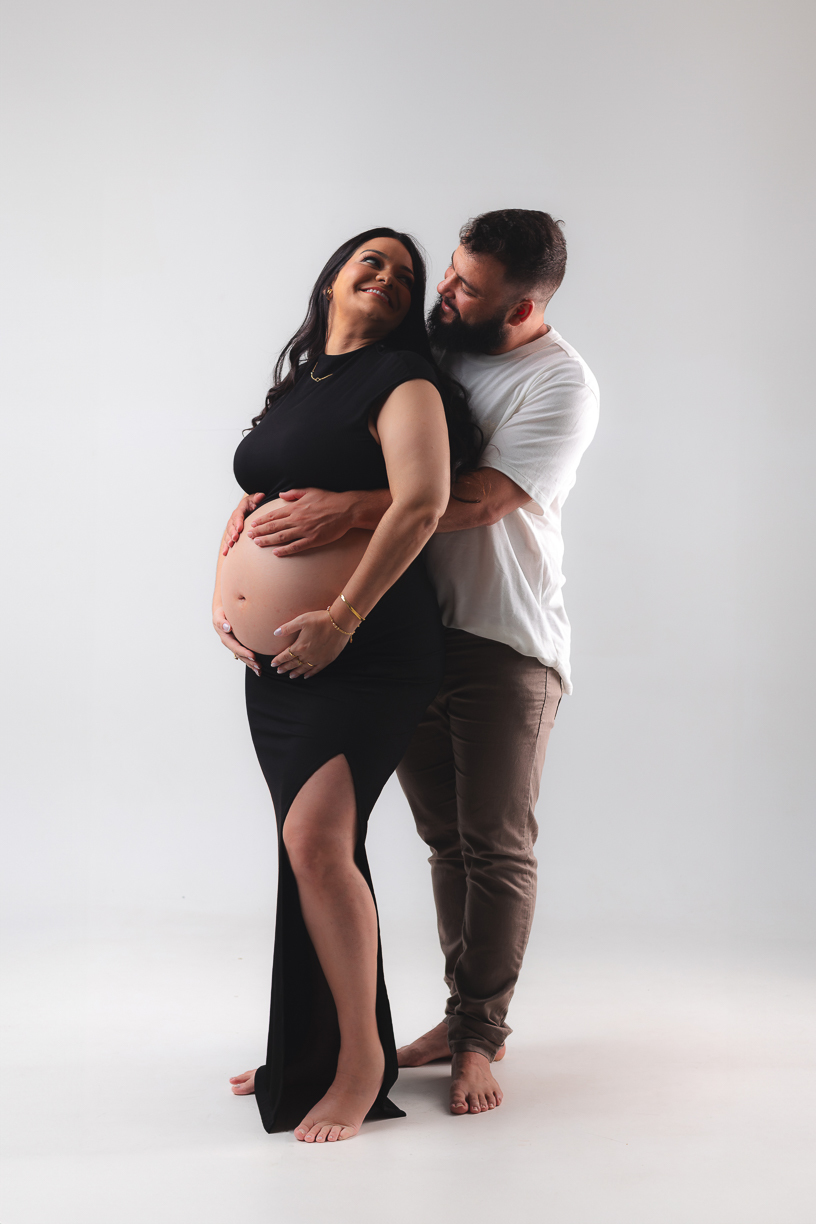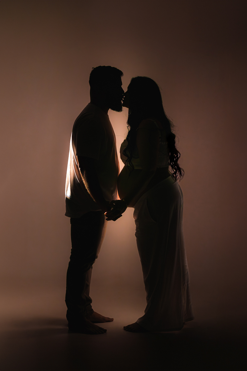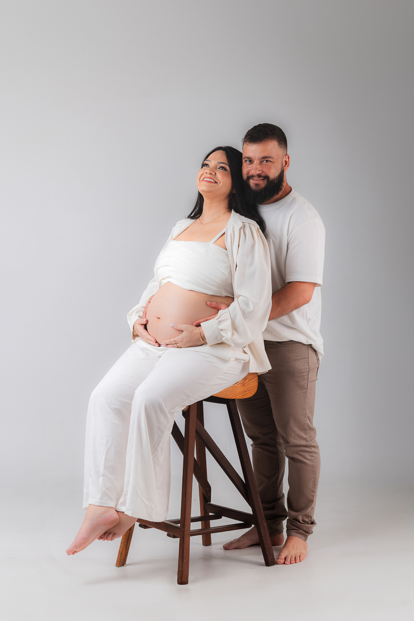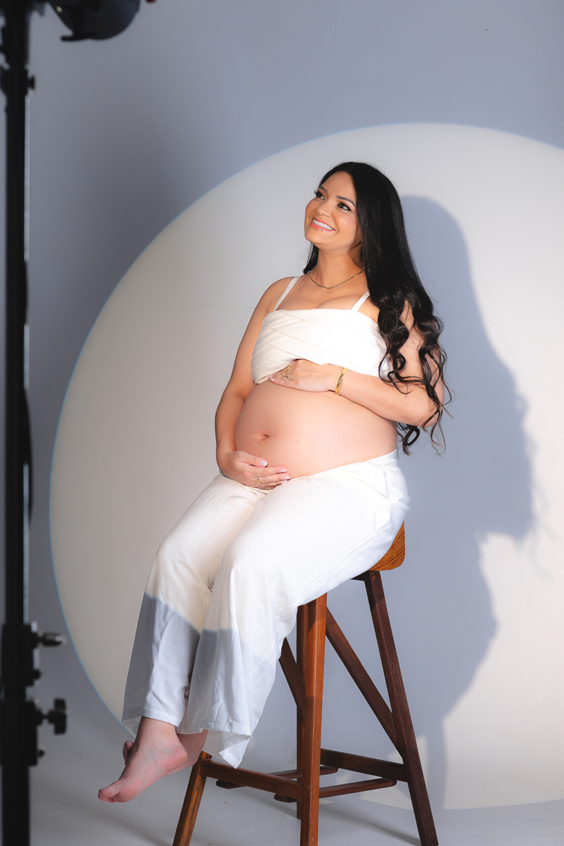 Em um ambiente calmo, com luzes bem posicionadas e sombras que falam por si, cada imagem revelou a beleza da espera... O casal, em harmonia total, mostrou em gestos simples o amor que cresce junto com a nova vida.