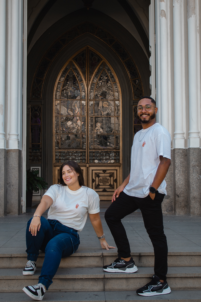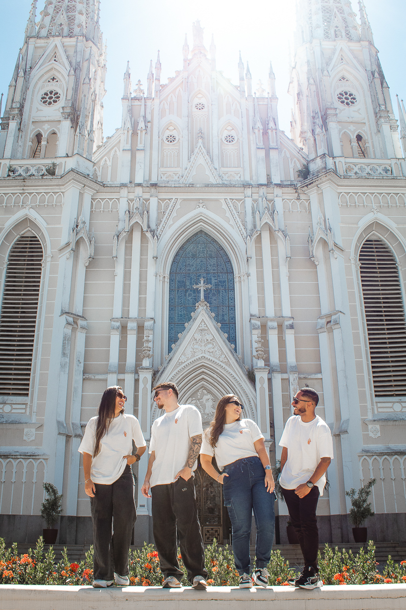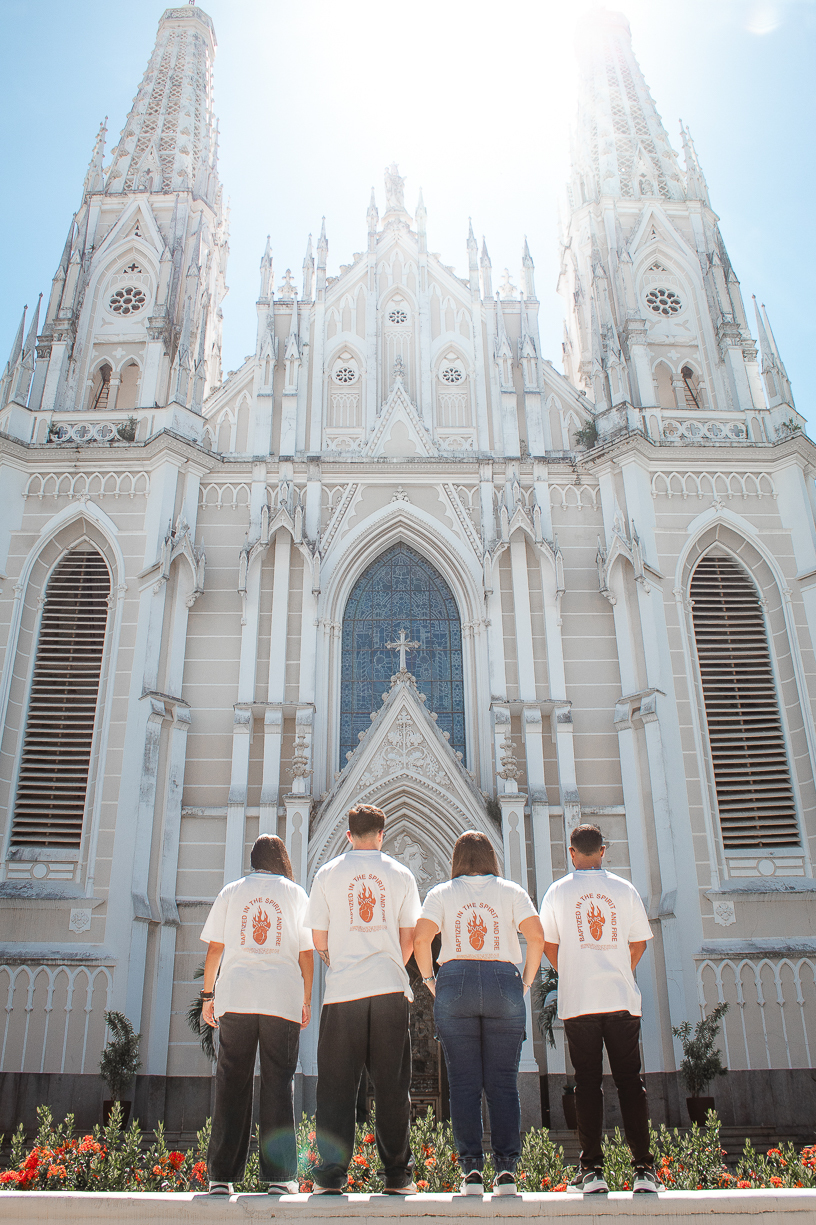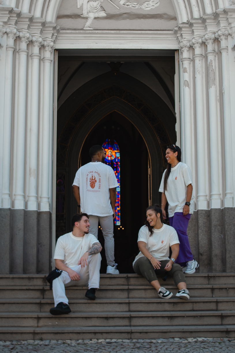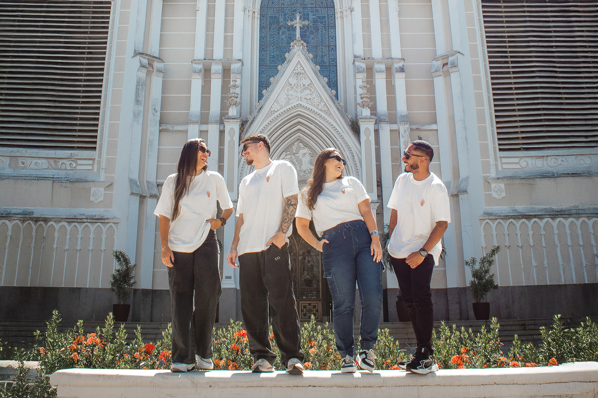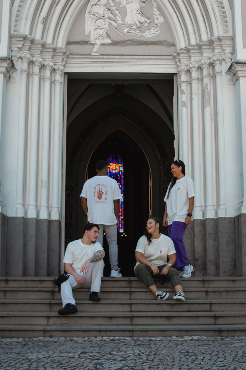 Cada peça carrega uma mensagem de fé com personalidade e ousadia, refletindo o propósito da marca: viver a fé com estilo e autenticidade. Os modelos jovens, trouxeram vida e energia ao ensaio, que aconteceu em frente à Catedral de Vitória, um cenário que une o sagrado e o contemporâneo de forma perfeita.