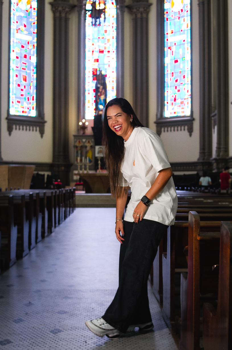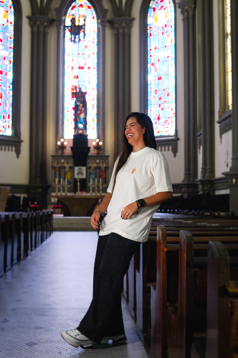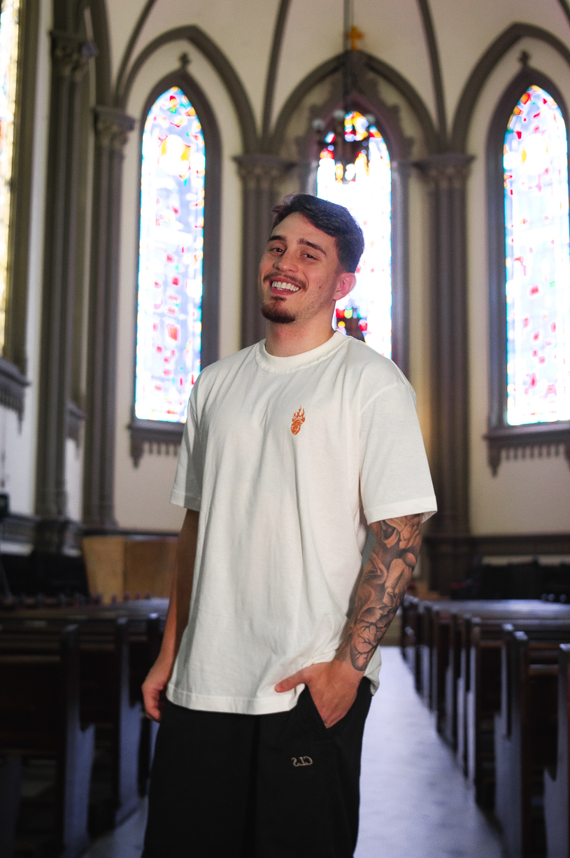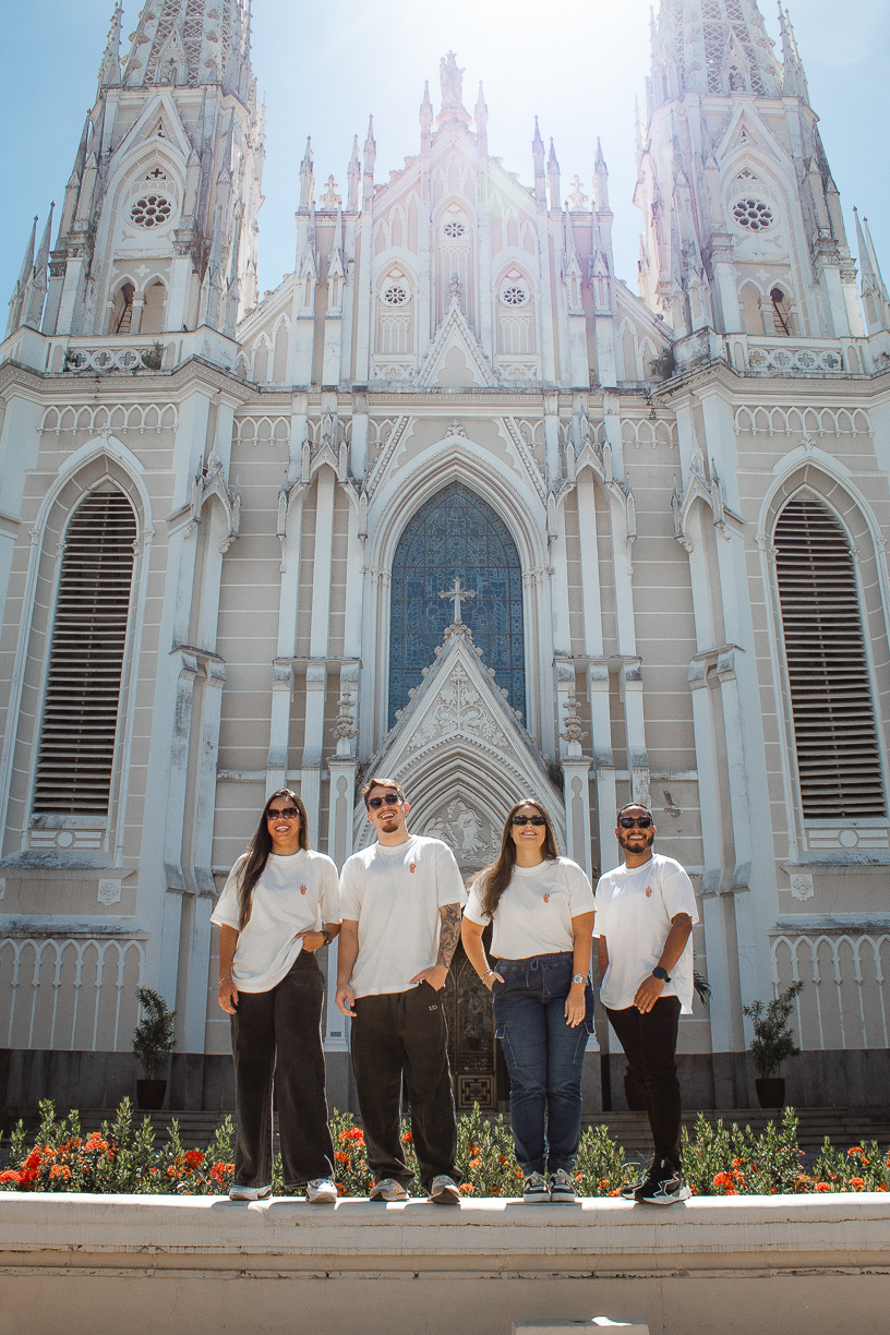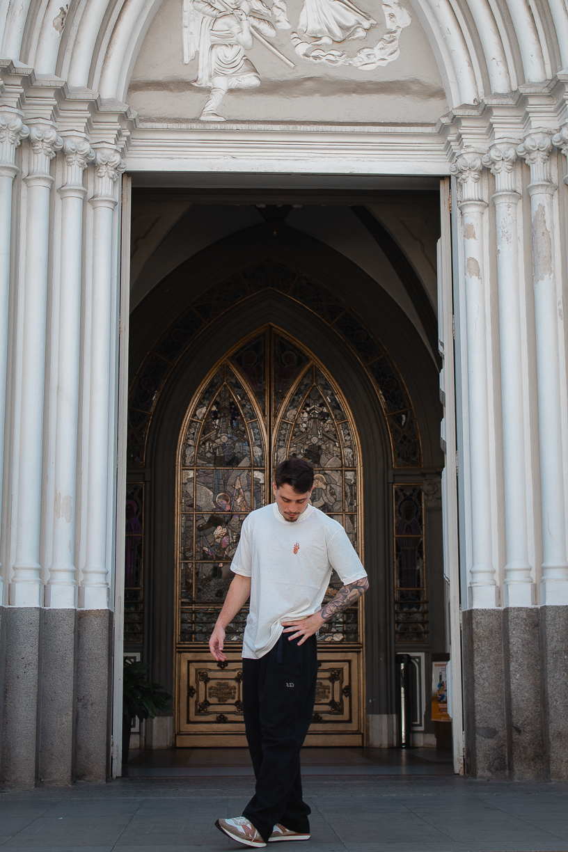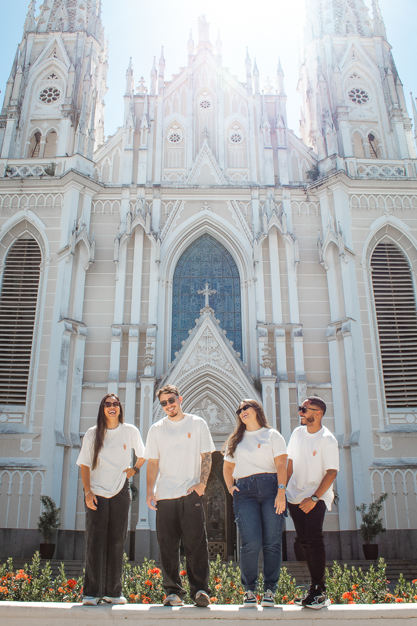 Cada peça carrega uma mensagem de fé com personalidade e ousadia, refletindo o propósito da marca: viver a fé com estilo e autenticidade. Os modelos jovens, trouxeram vida e energia ao ensaio, que aconteceu em frente à Catedral de Vitória, um cenário que une o sagrado e o contemporâneo de forma perfeita.