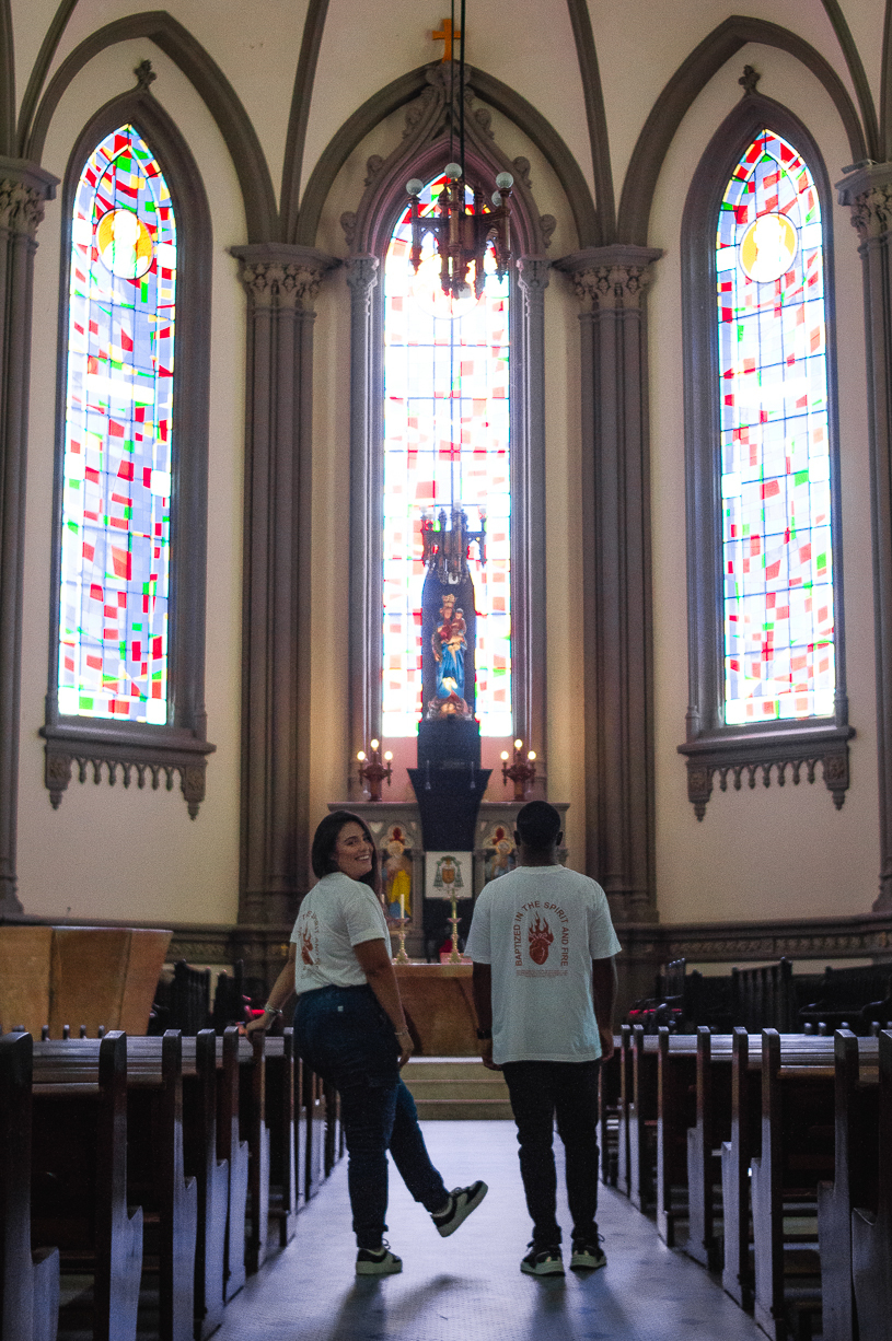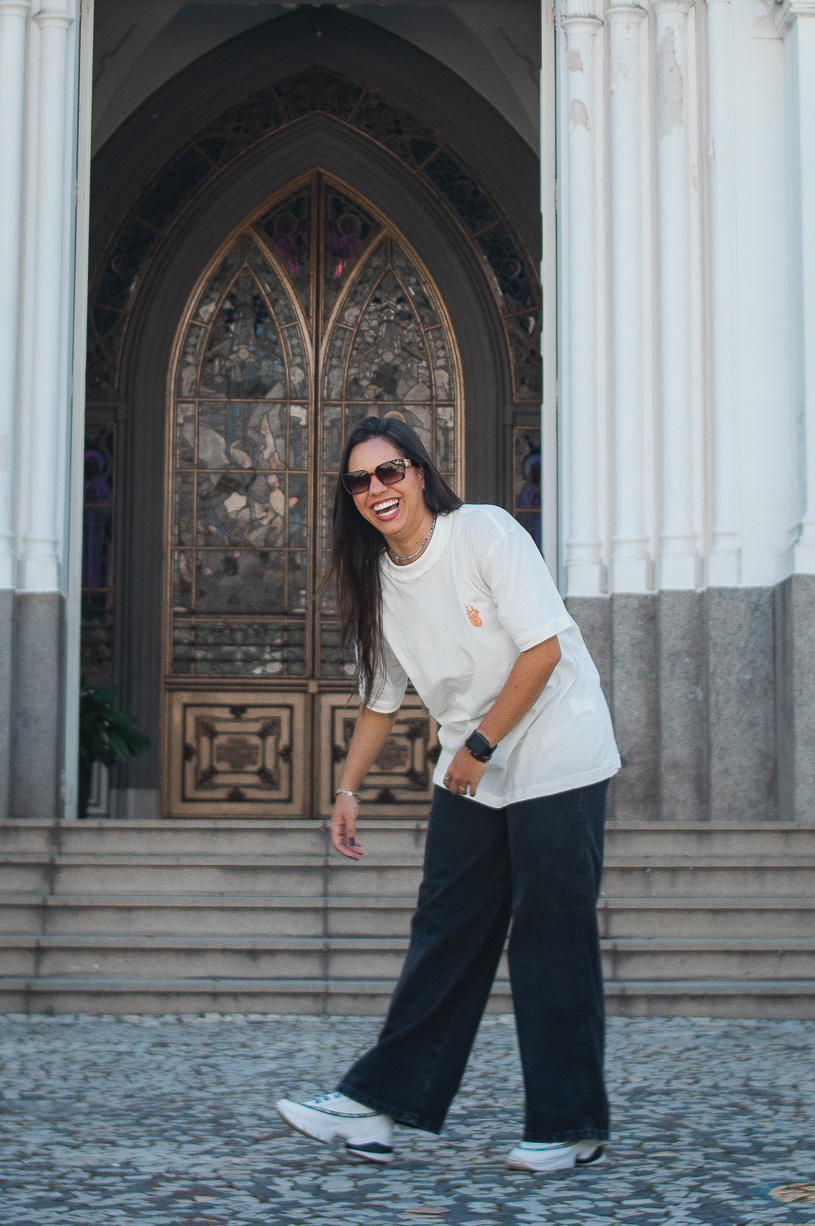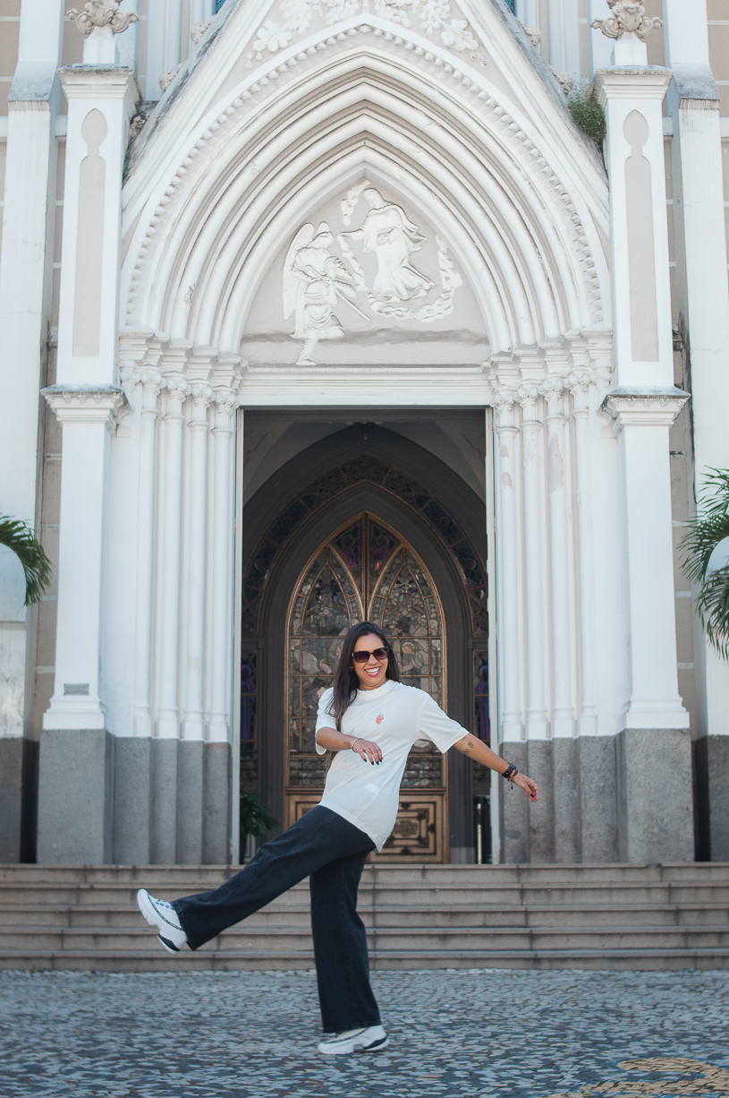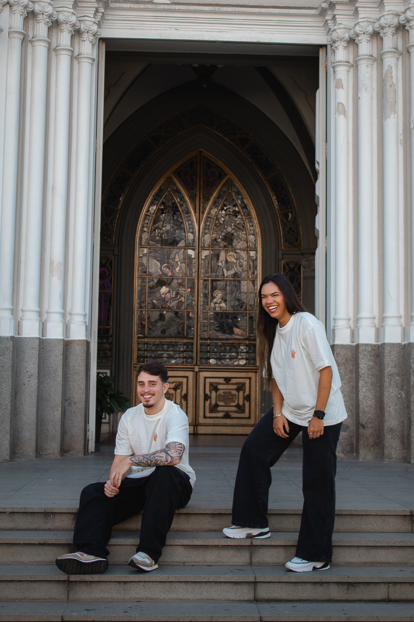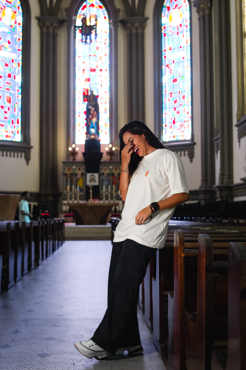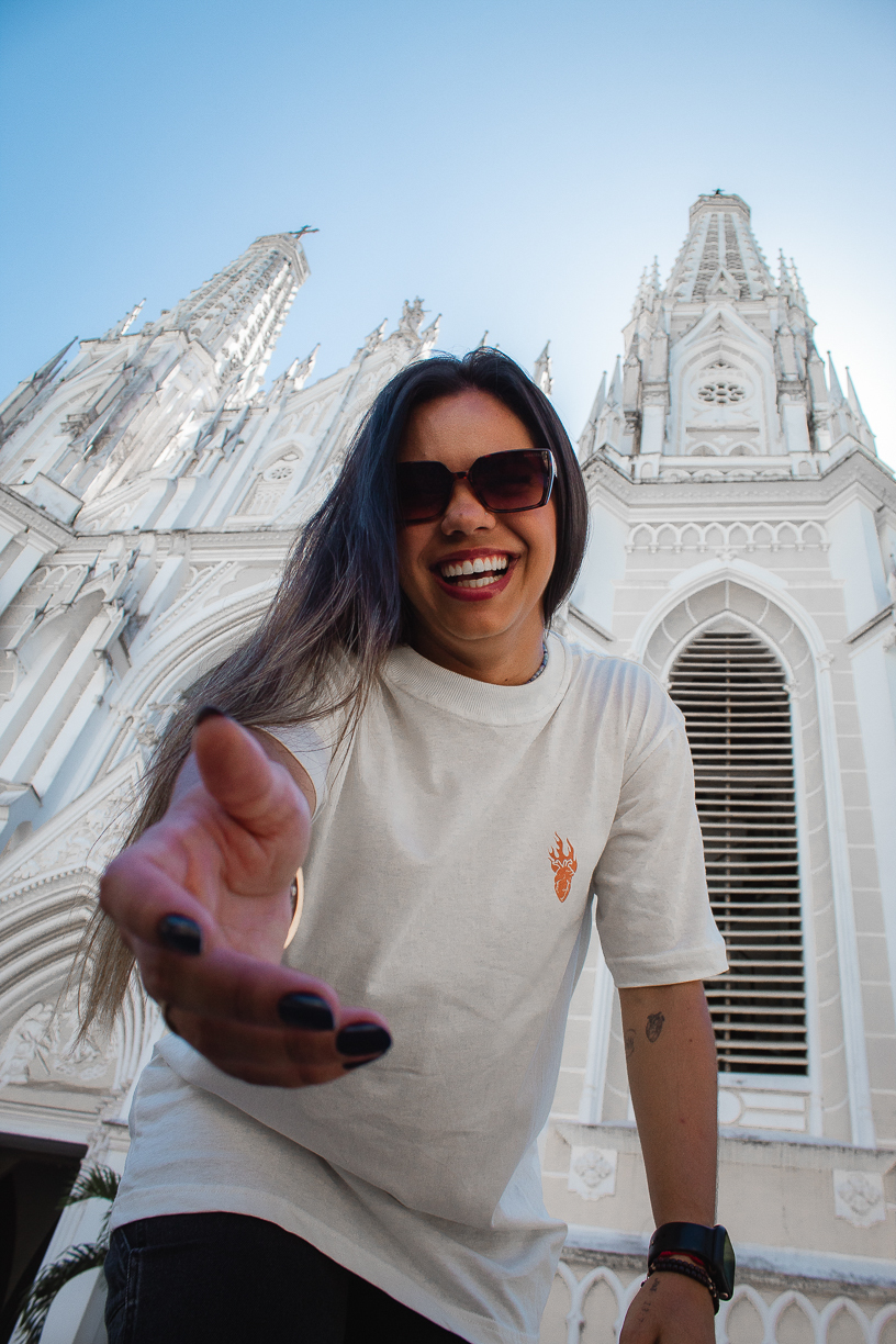 Cada peça carrega uma mensagem de fé com personalidade e ousadia, refletindo o propósito da marca: viver a fé com estilo e autenticidade. Os modelos jovens, trouxeram vida e energia ao ensaio, que aconteceu em frente à Catedral de Vitória, um cenário que une o sagrado e o contemporâneo de forma perfeita.